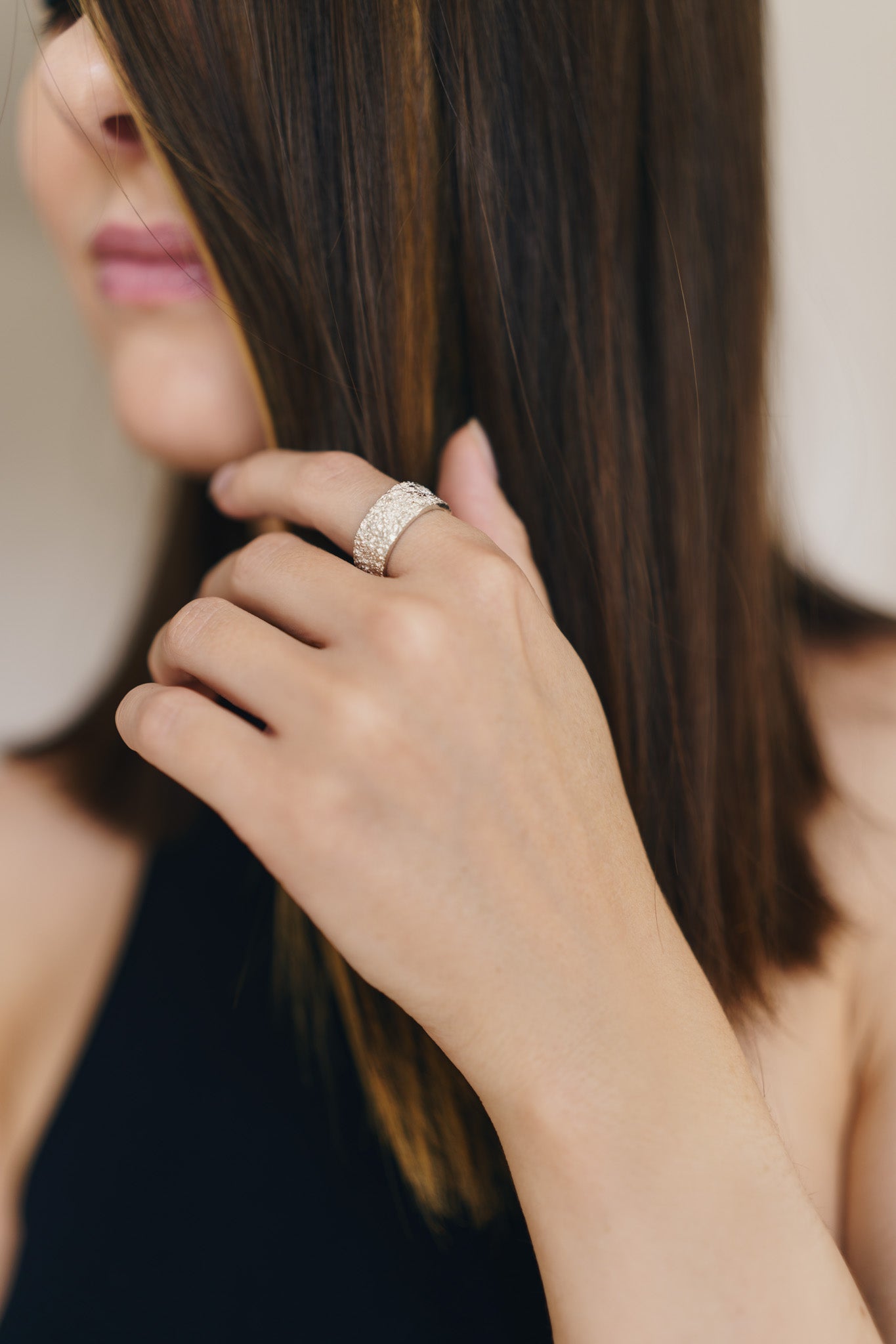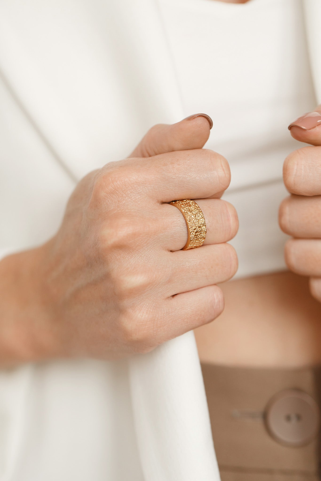 The "Sand" light ring (8 mm) boasts of an awesome design that exudes gentle elegance. Perfect for both casual and formal wear, this ring will surely make an impression and elevate any outfit. Its unique design is eye-catching and versatile, making it a must-have accessory for any jewelry collection.