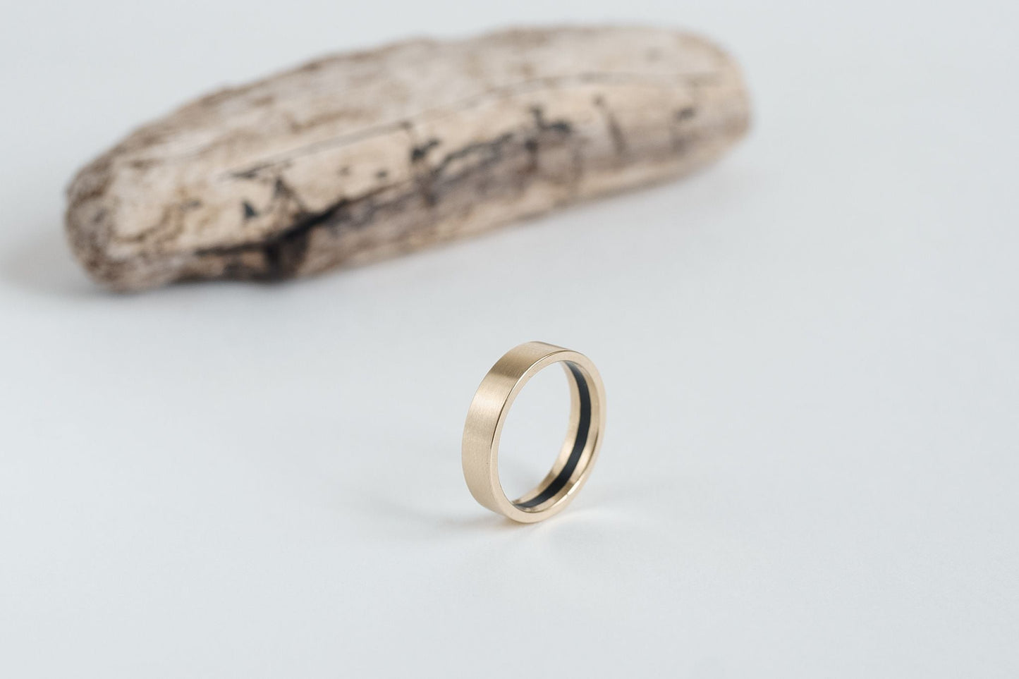 Ring "Secret Stripe" (5 mm) with enamel — a sleek piece with a hidden detail. The enamel stripe is placed inside the ring, making it invisible from the outside, adding symbolism and individuality to the design. An ideal choice for those who appreciate style with a secret meaning.