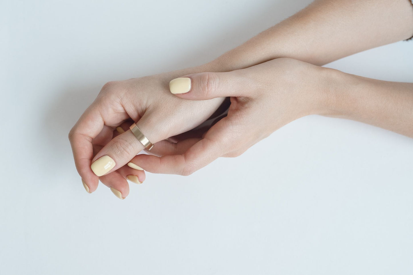 Important: A narrow ring should fit snugly over the knuckle to prevent slipping, while a wider ring should easily pass over the knuckle without pressing, as it may become difficult to remove in the morning due to swelling.