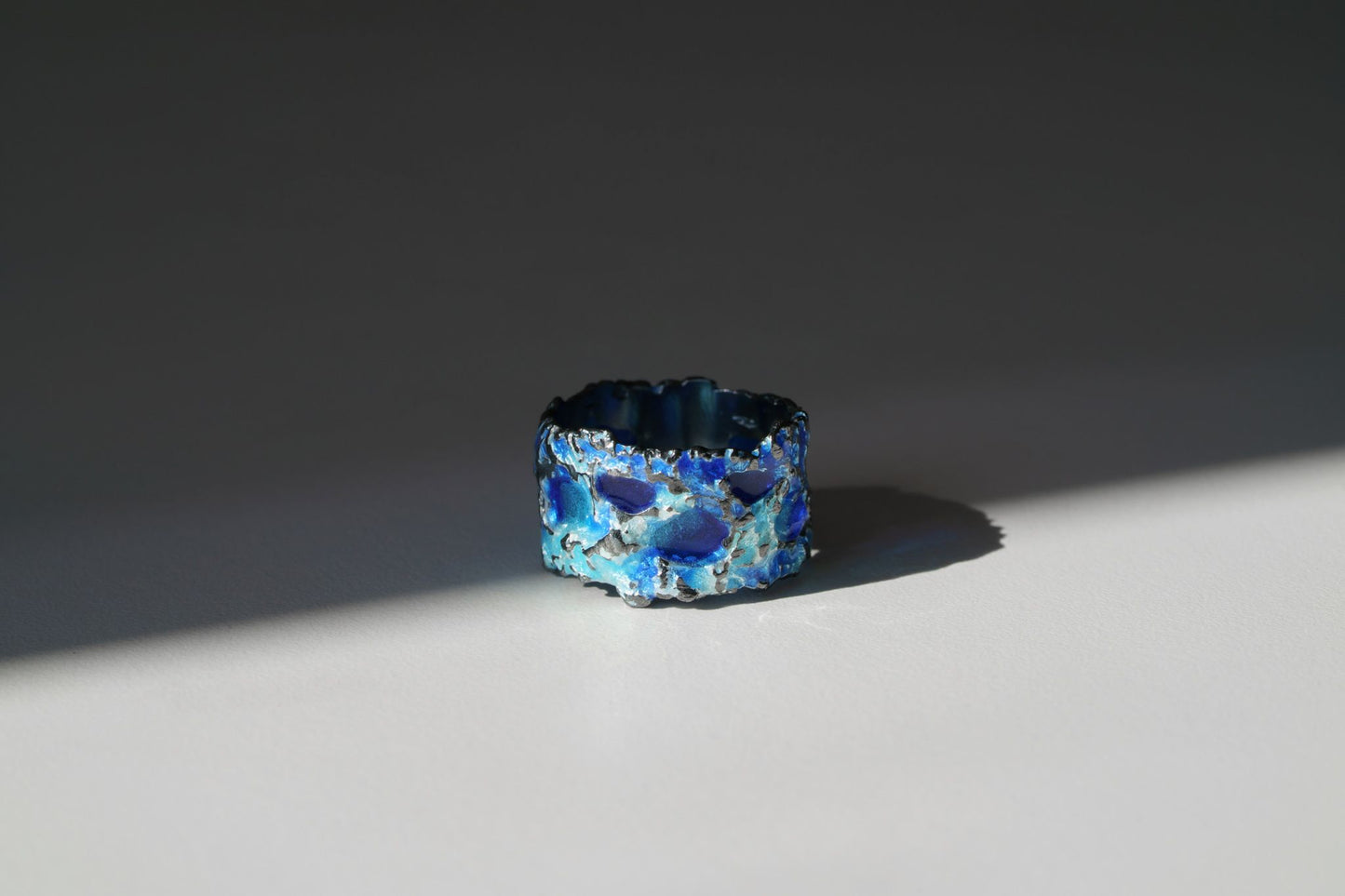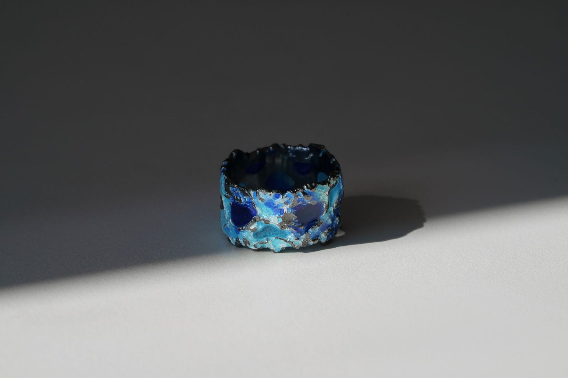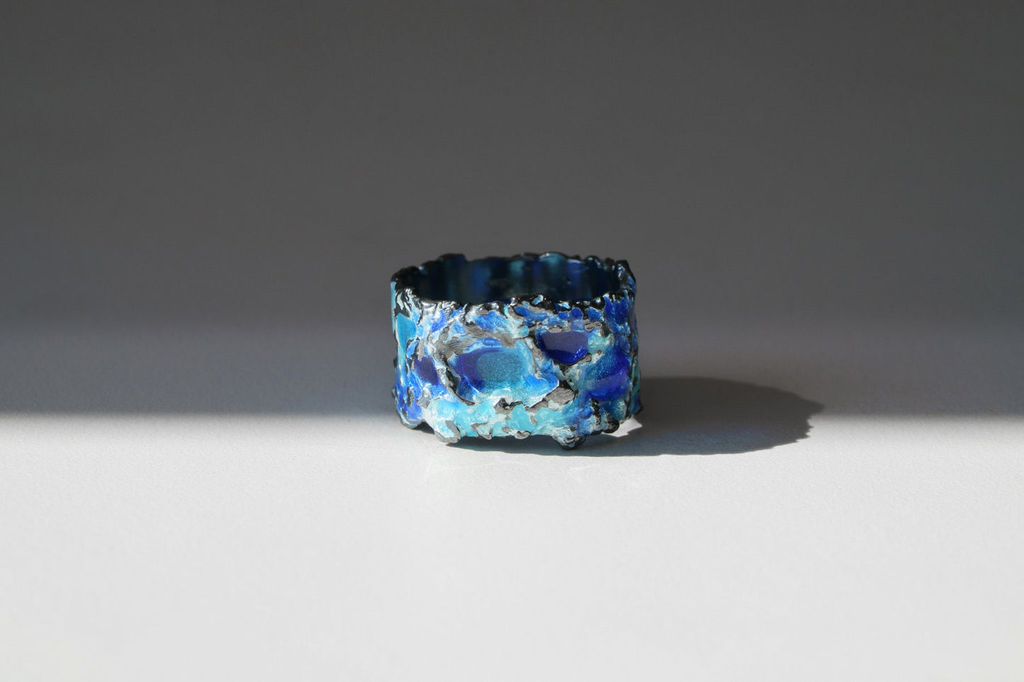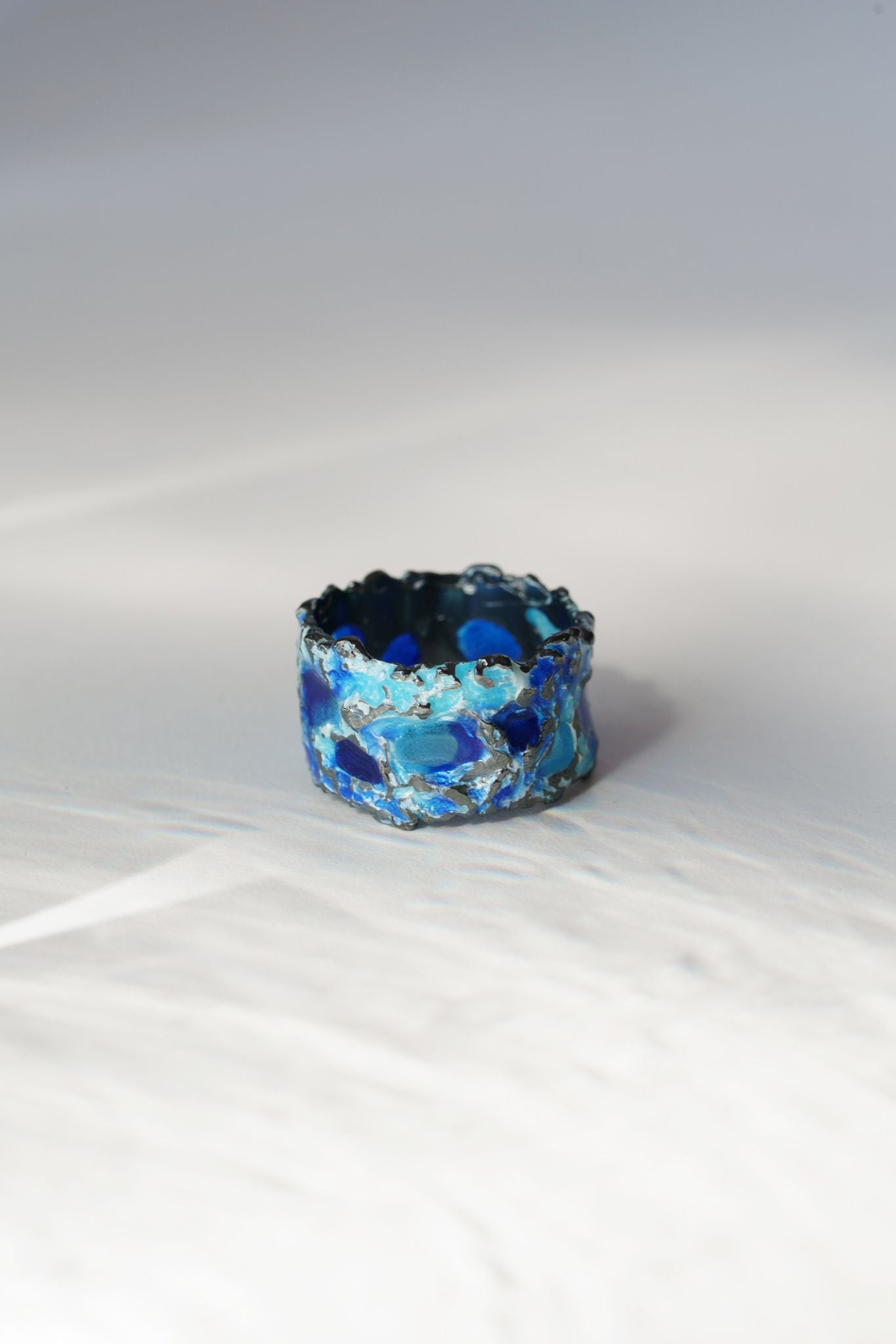 This 13 mm navy-blue "Storm" ring features a delicate blackened finish. Its bold design and high-quality materials make it a durable and stylish addition to any ensemble. Perfect for those looking for a statement piece that will stand the test of time.