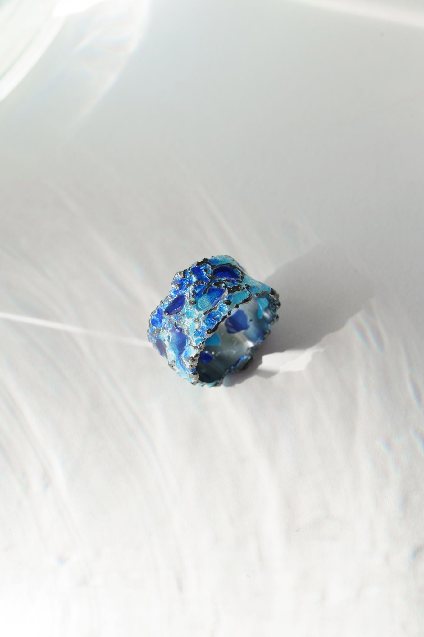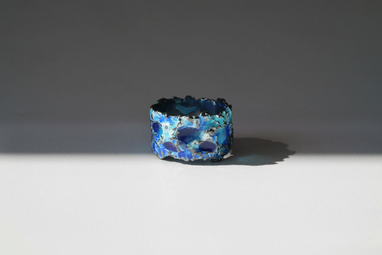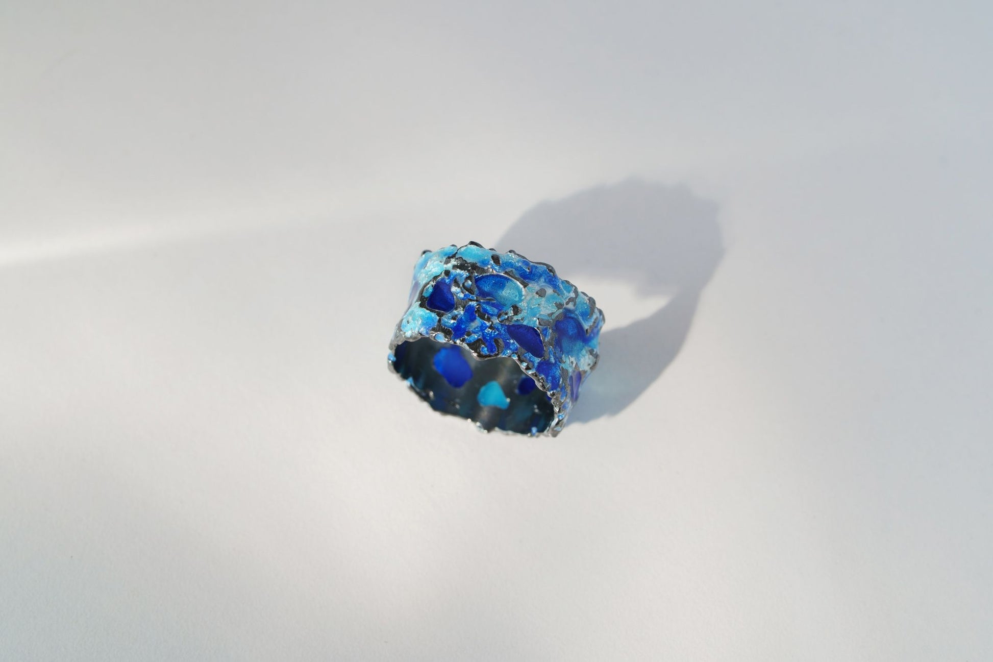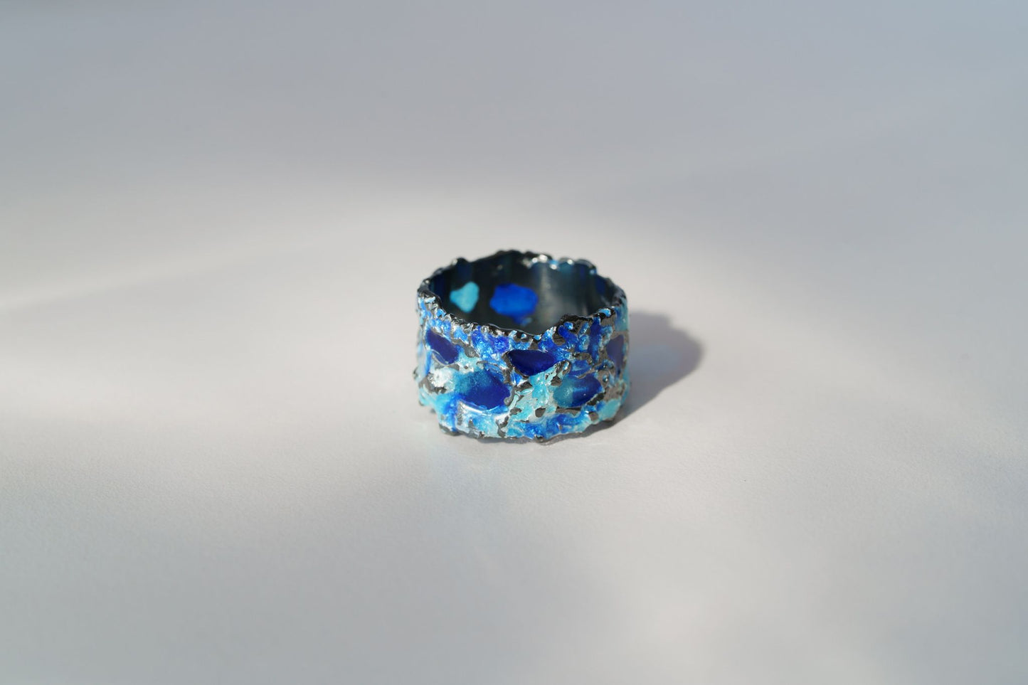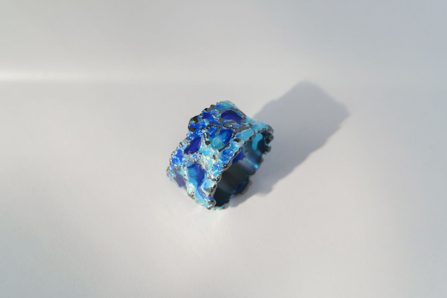 This 13 mm navy-blue "Storm" ring features a delicate blackened finish. Its bold design and high-quality materials make it a durable and stylish addition to any ensemble. Perfect for those looking for a statement piece that will stand the test of time.