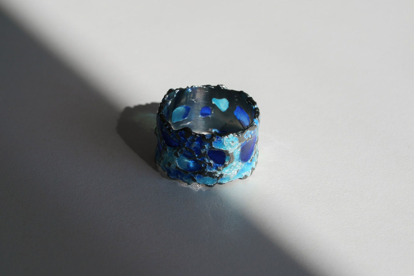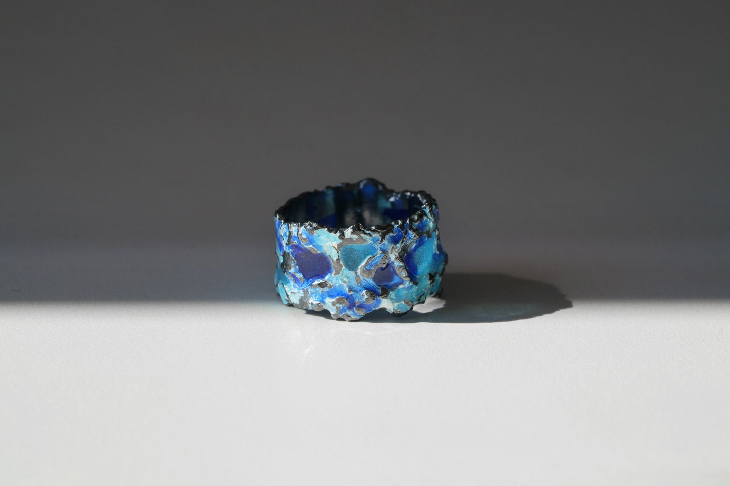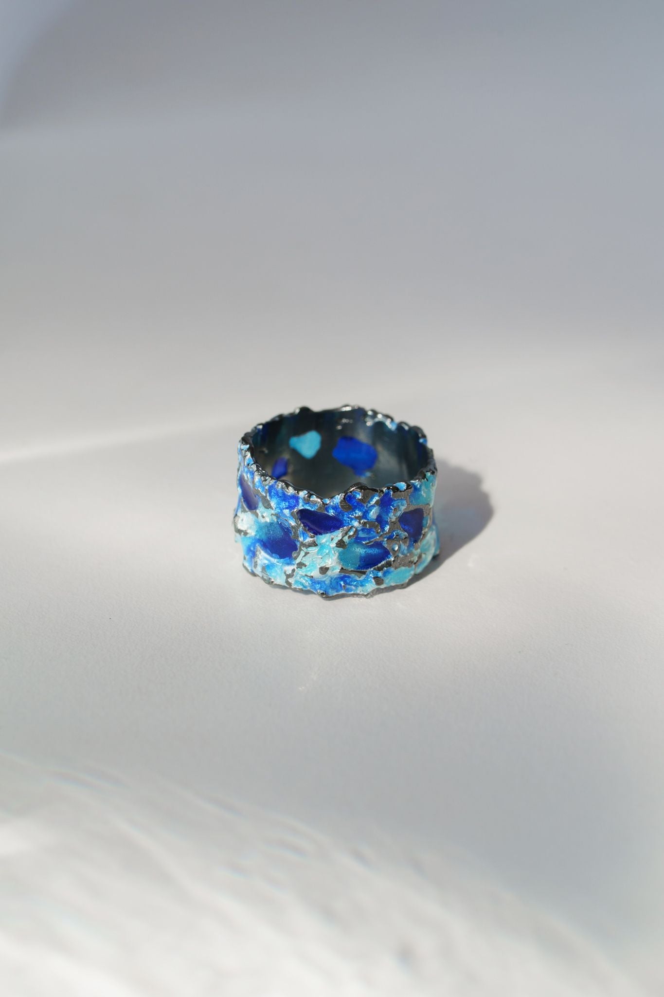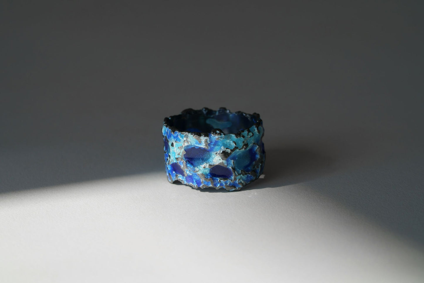 This 13 mm navy-blue "Storm" ring features a delicate blackened finish. Its bold design and high-quality materials make it a durable and stylish addition to any ensemble. Perfect for those looking for a statement piece that will stand the test of time.