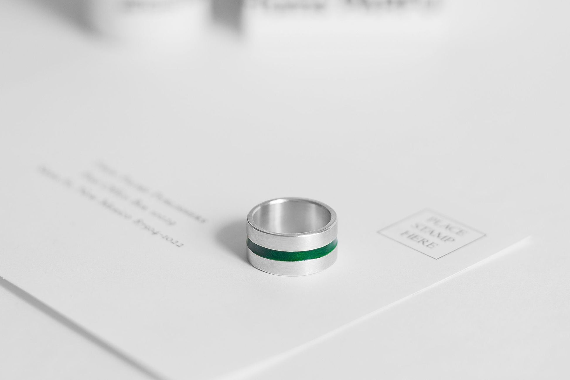 Ring "Stripe" (10 mm) with enamel — a bold piece with a wide profile and minimalist design. The contrasting enamel adds expressiveness, making it a striking accent in your look. An ideal choice for those who love modern and eye-catching accessories.