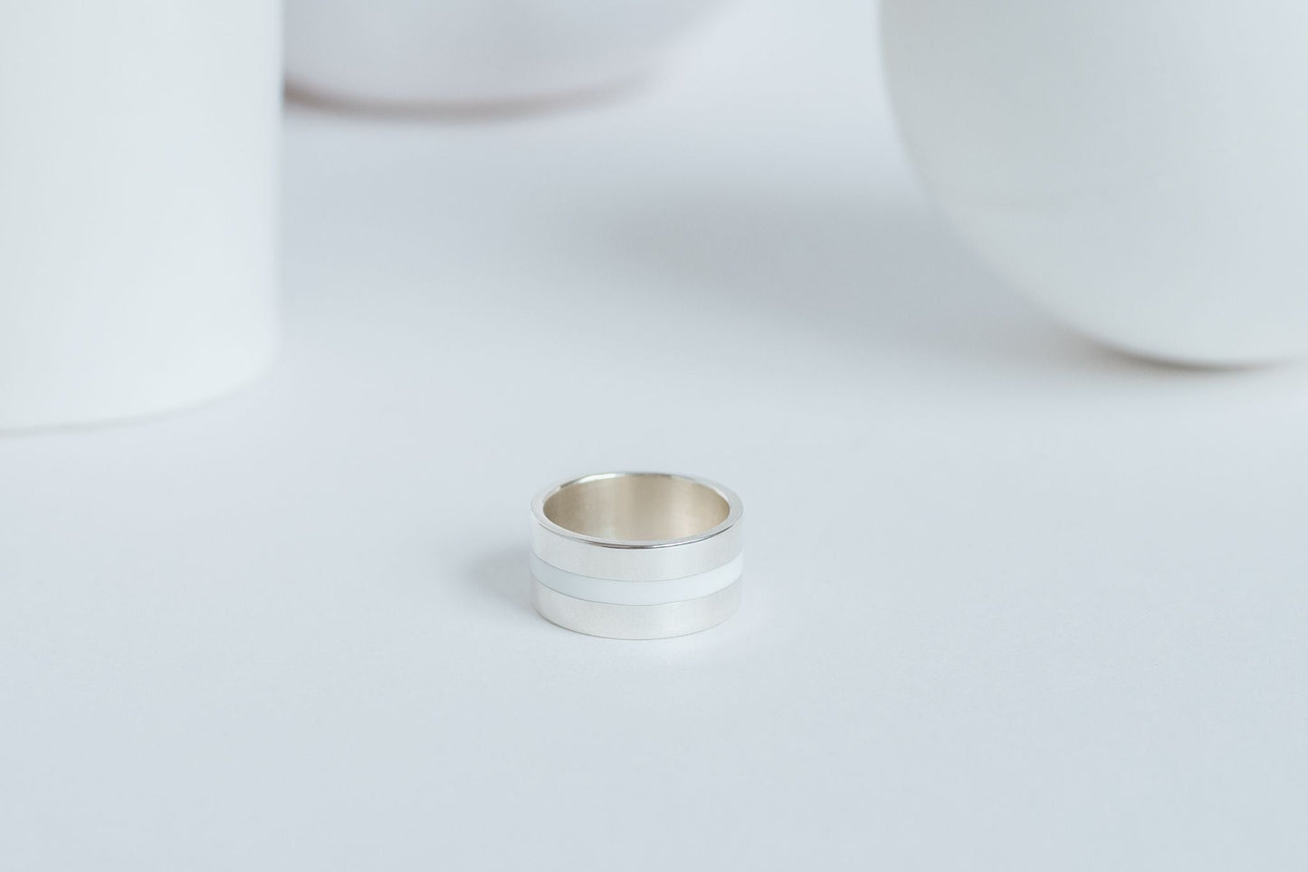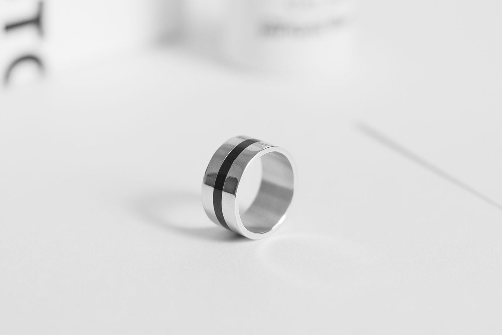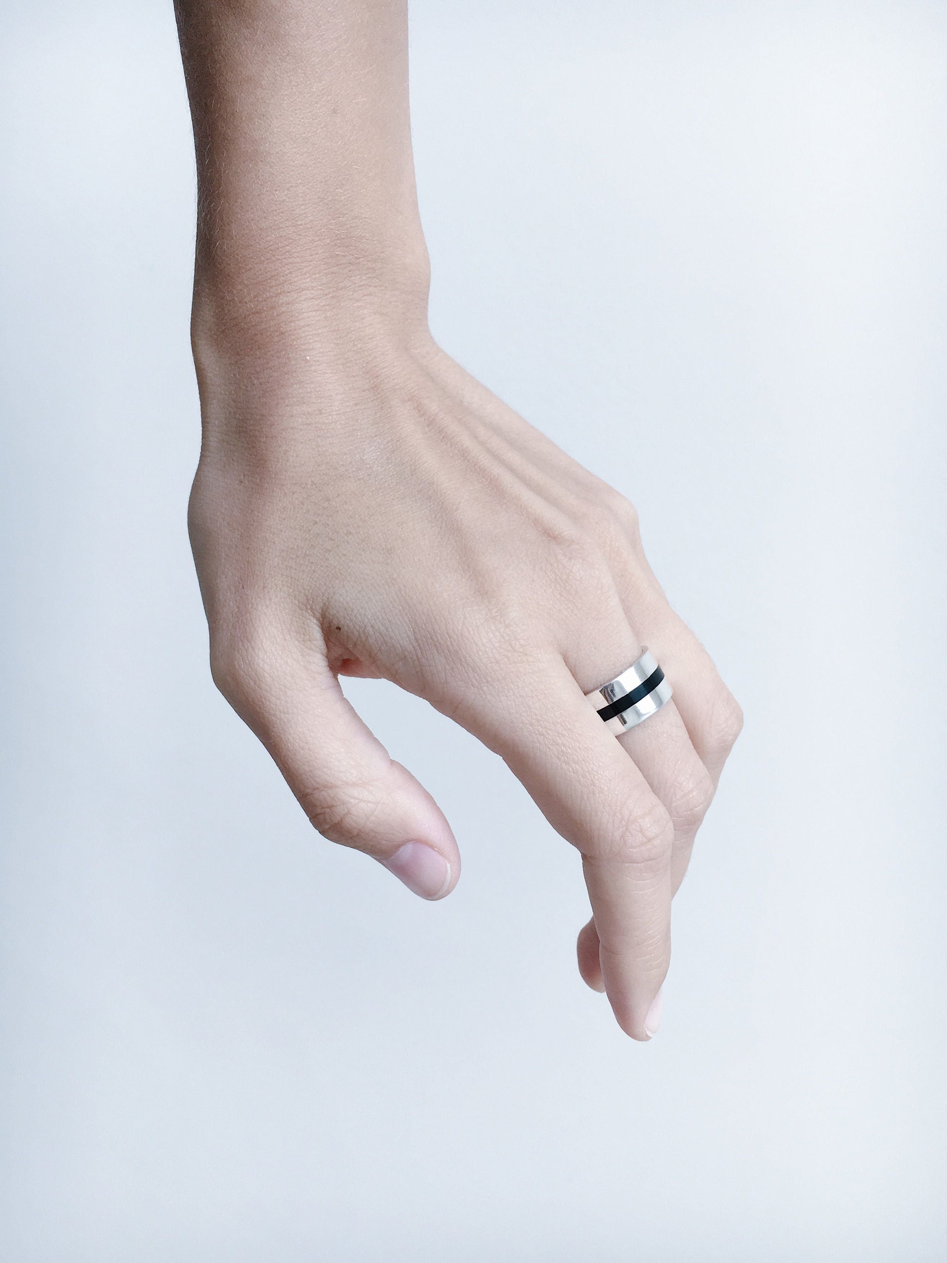 Ring "Stripe" (10 mm) with enamel — a bold piece with a wide profile and minimalist design. The contrasting enamel adds expressiveness, making it a striking accent in your look. An ideal choice for those who love modern and eye-catching accessories.