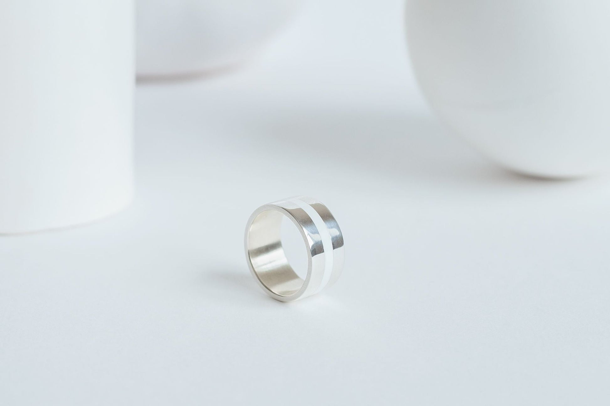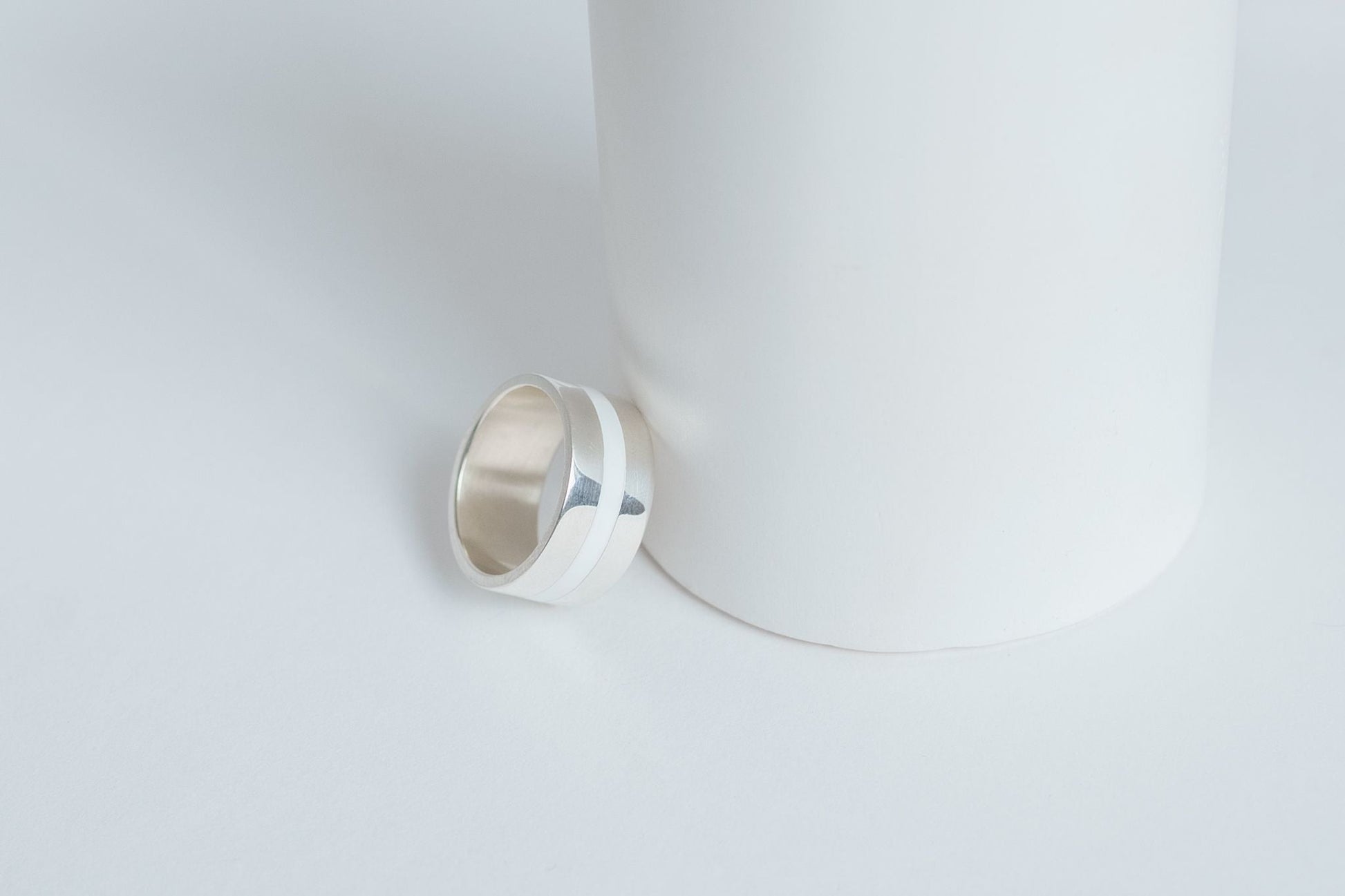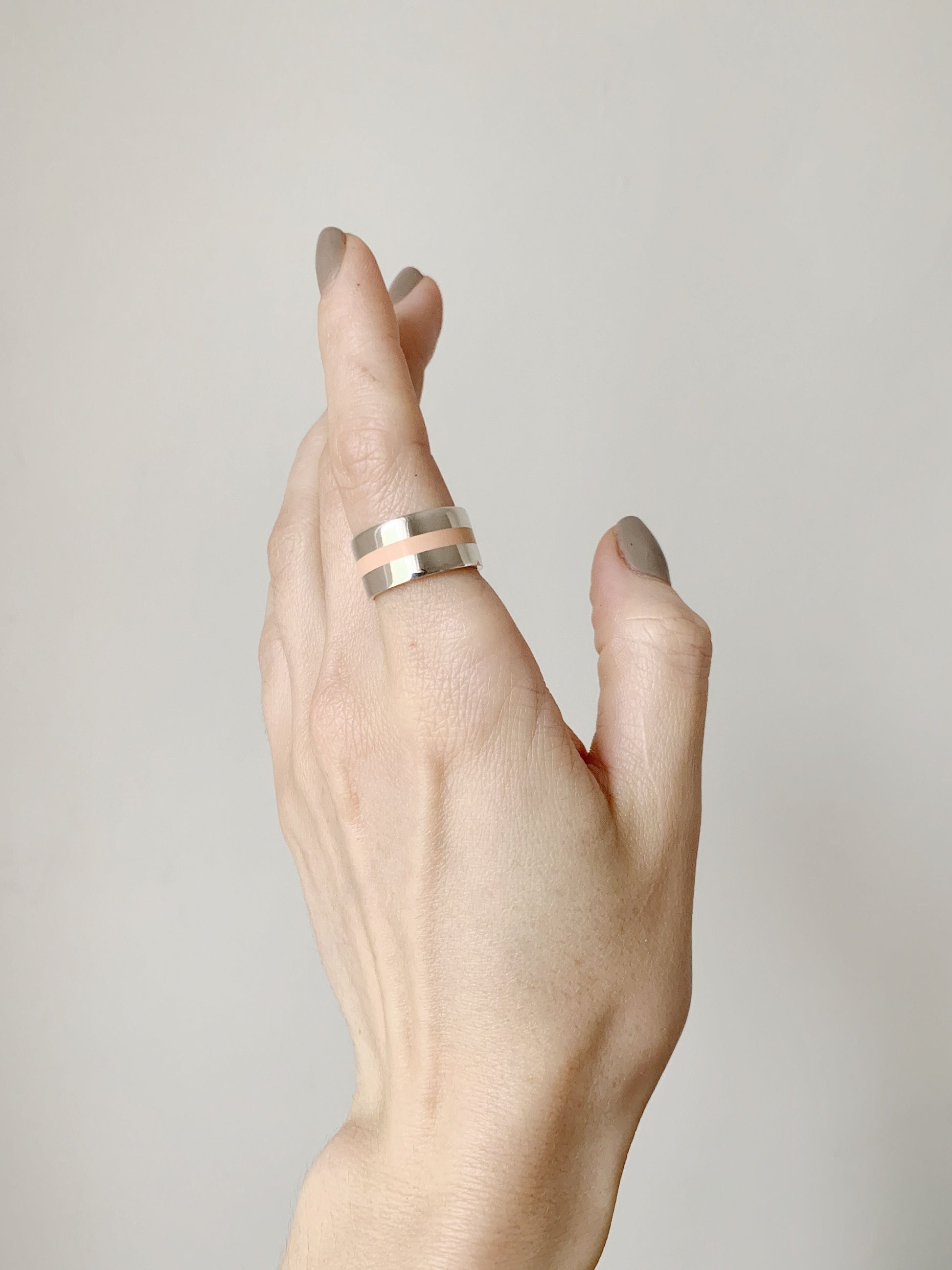 Ring "Stripe" (10 mm) with enamel — a bold piece with a wide profile and minimalist design. The contrasting enamel adds expressiveness, making it a striking accent in your look. An ideal choice for those who love modern and eye-catching accessories.