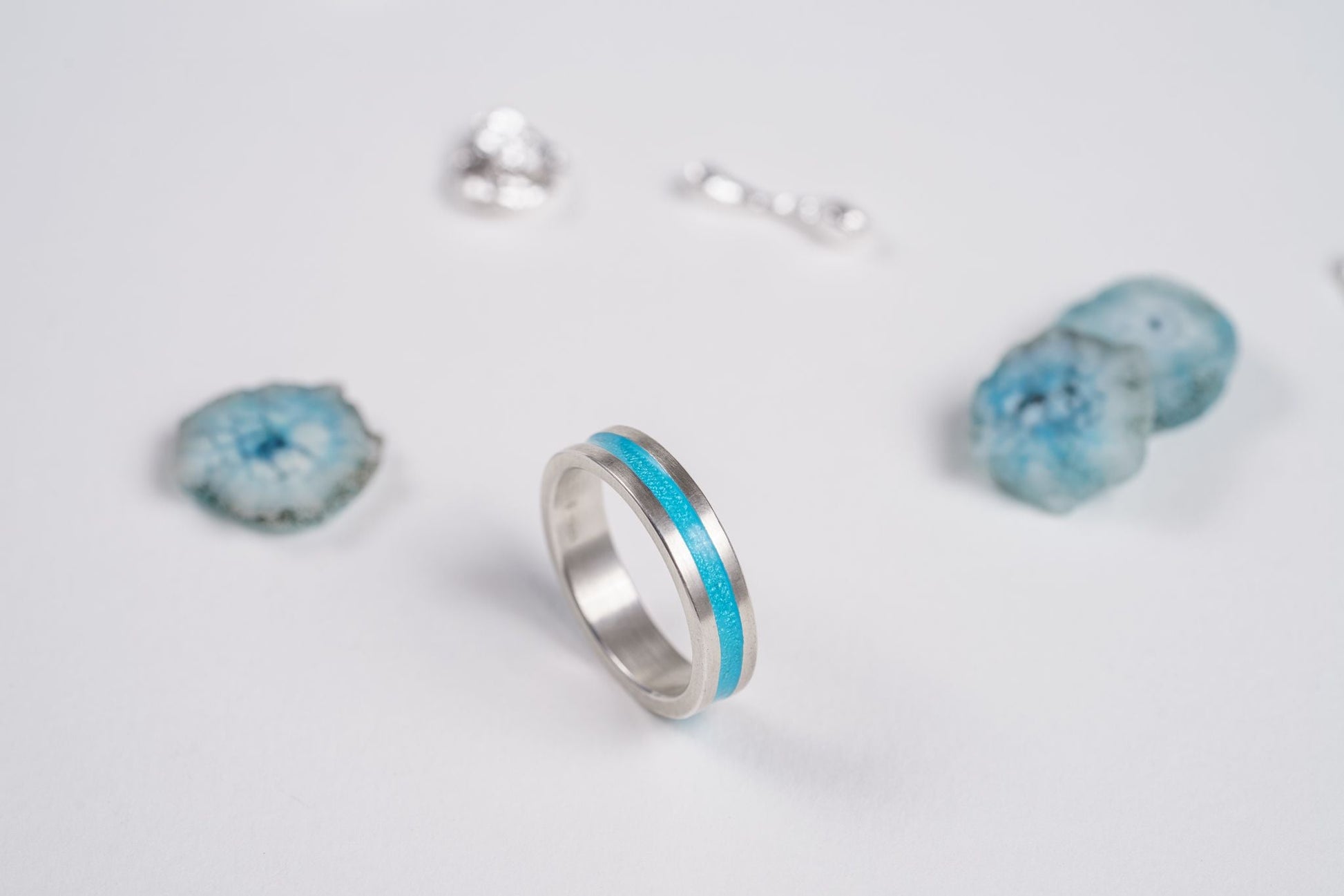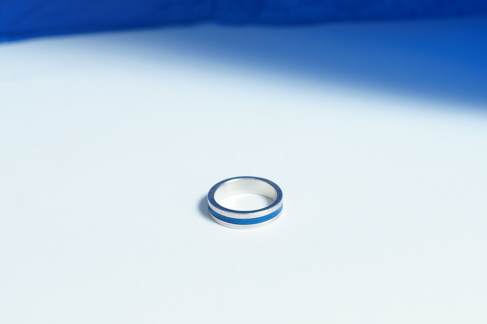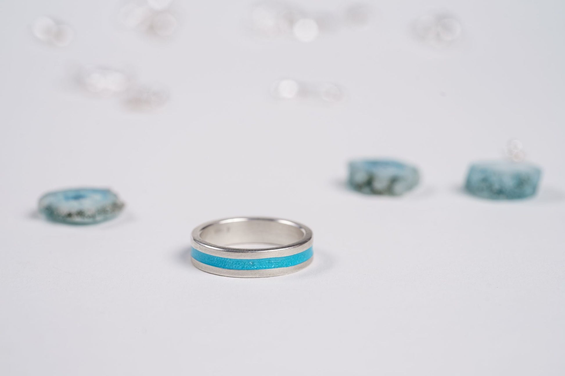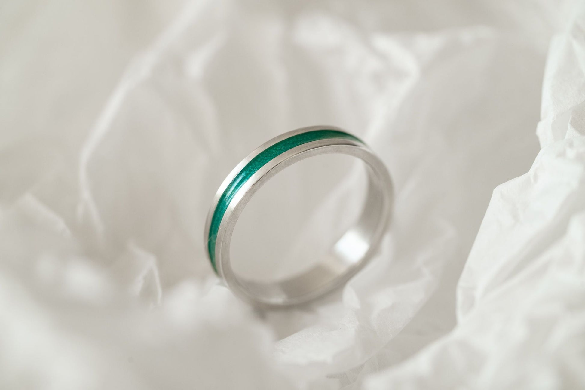 Ring "Stripe" (5 mm) with enamel — a stylish piece with a modern design. The vibrant enamel stripe creates a bold accent, highlighting elegance and confidence in style. An ideal choice for those who appreciate minimalism with character.