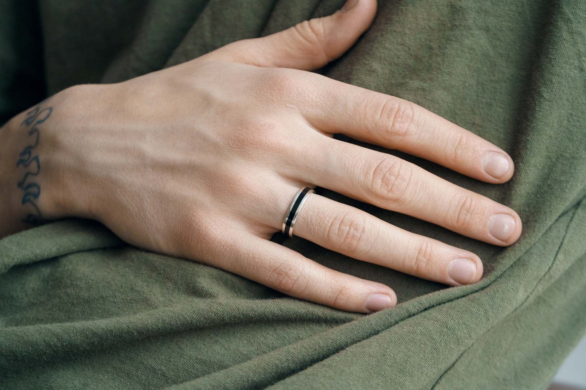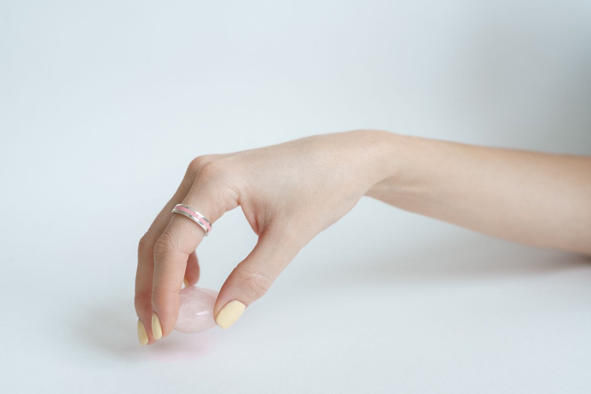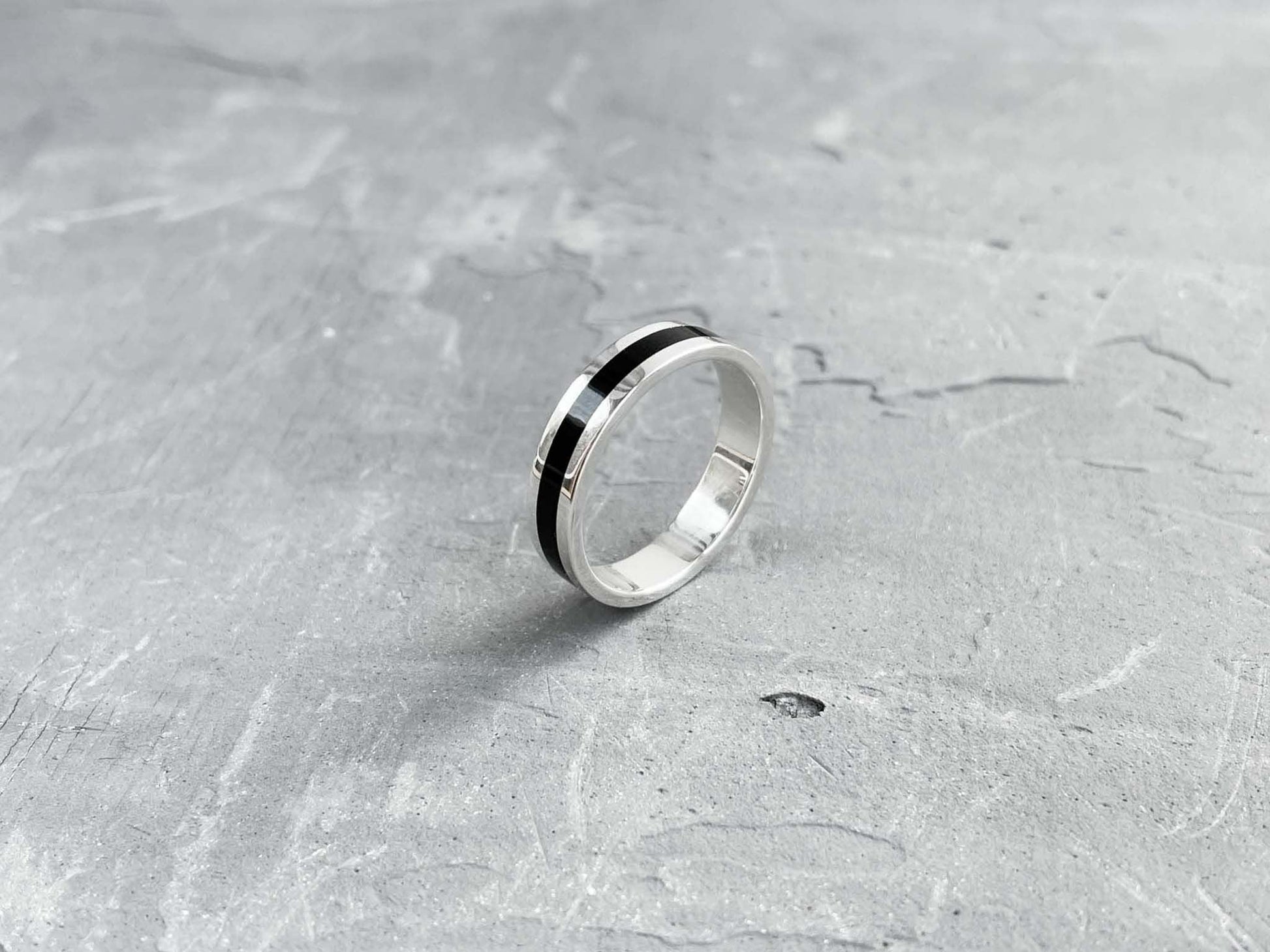 Ring "Stripe" (5 mm) with enamel — a stylish piece with a modern design. The vibrant enamel stripe creates a bold accent, highlighting elegance and confidence in style. An ideal choice for those who appreciate minimalism with character.