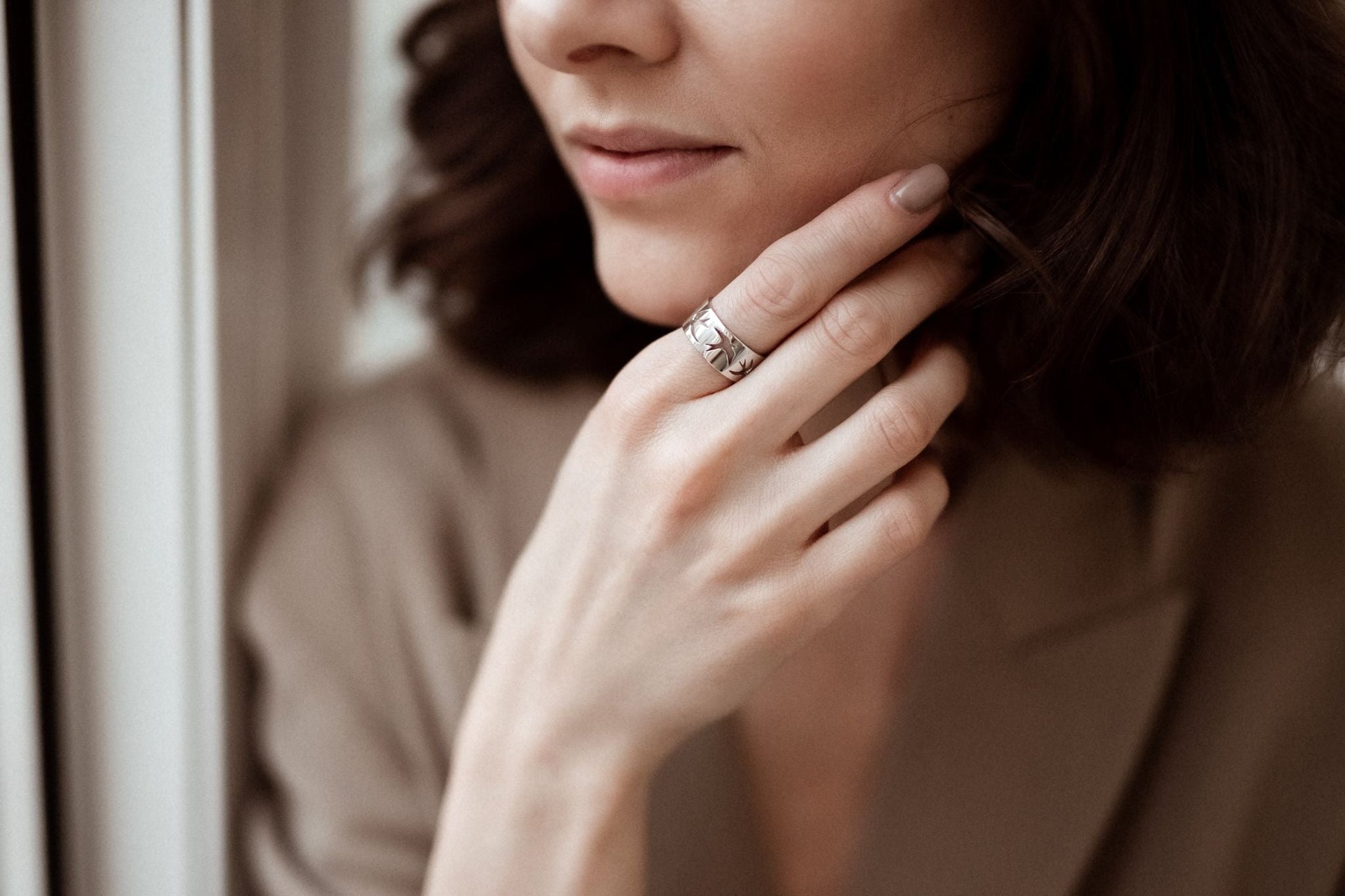 Important: A narrow ring should fit snugly over the knuckle to prevent slipping, while a wider ring should easily pass over the knuckle without pressing, as it may become difficult to remove in the morning due to swelling.