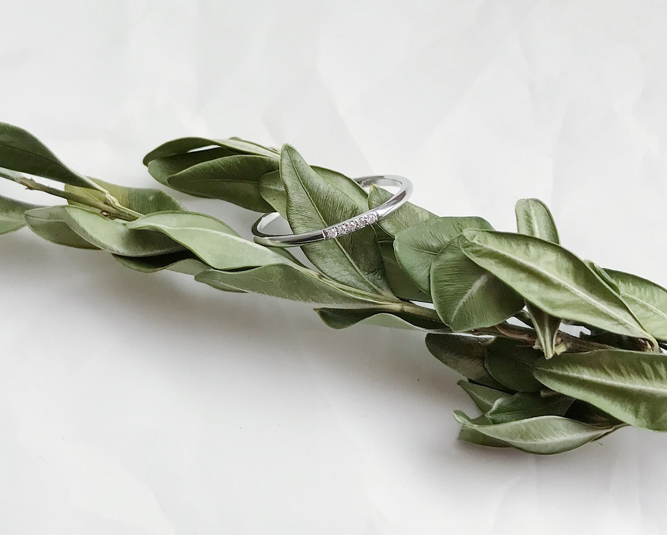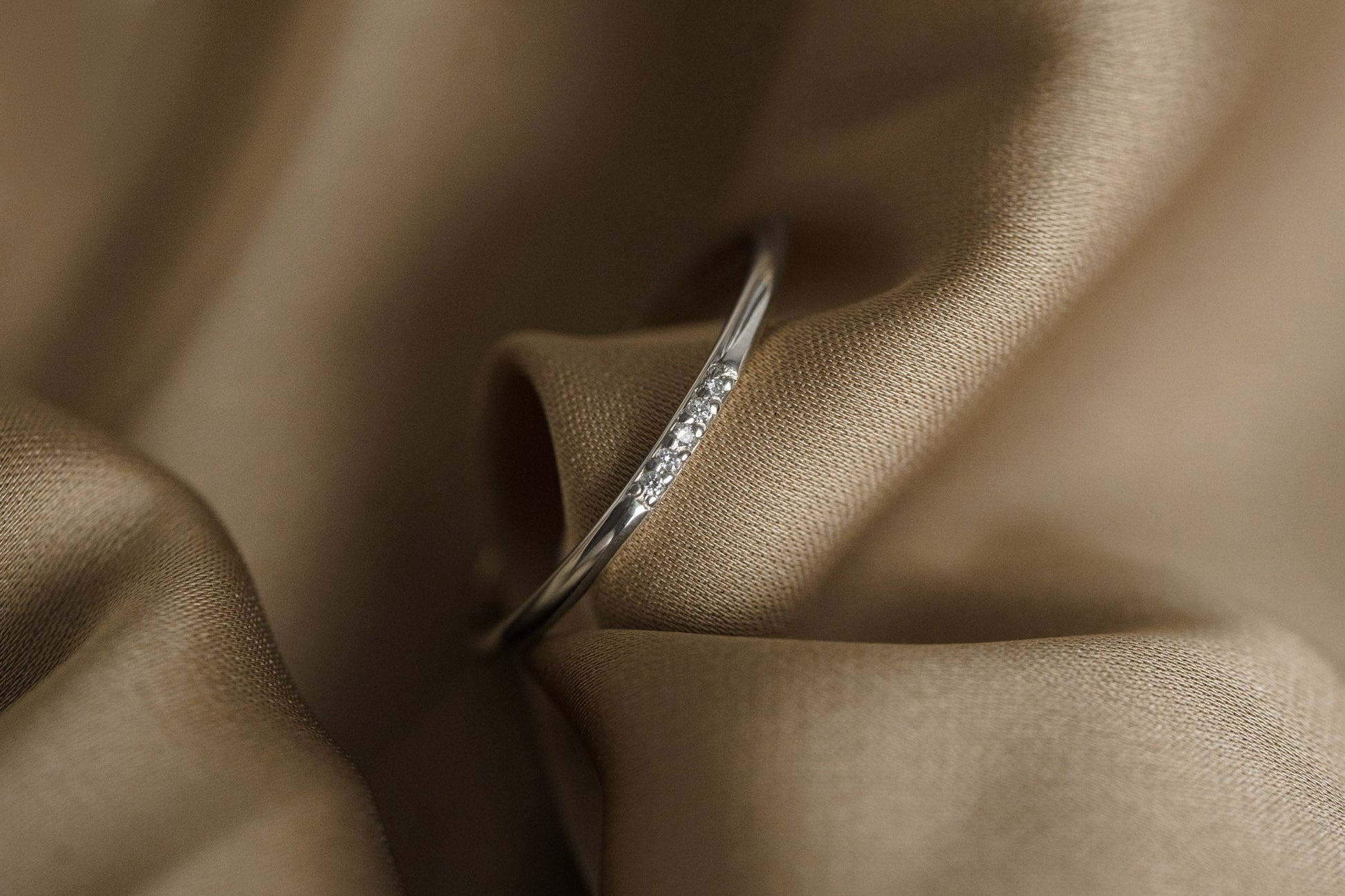 Ring "Thread" (5 gemstones) — a delicate piece that combines simplicity and elegance. The row of stones adds brilliance while harmoniously accentuating the minimalist design. An ideal choice for creating a refined and elegant look.