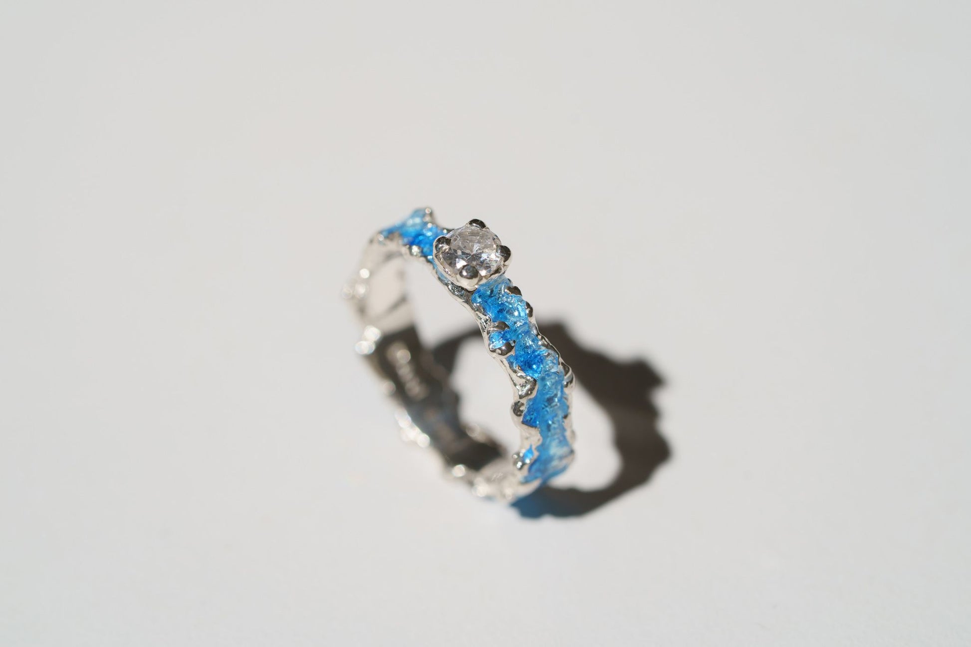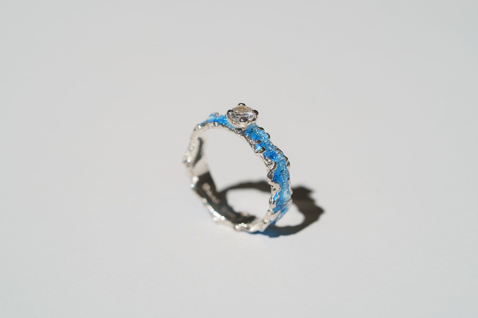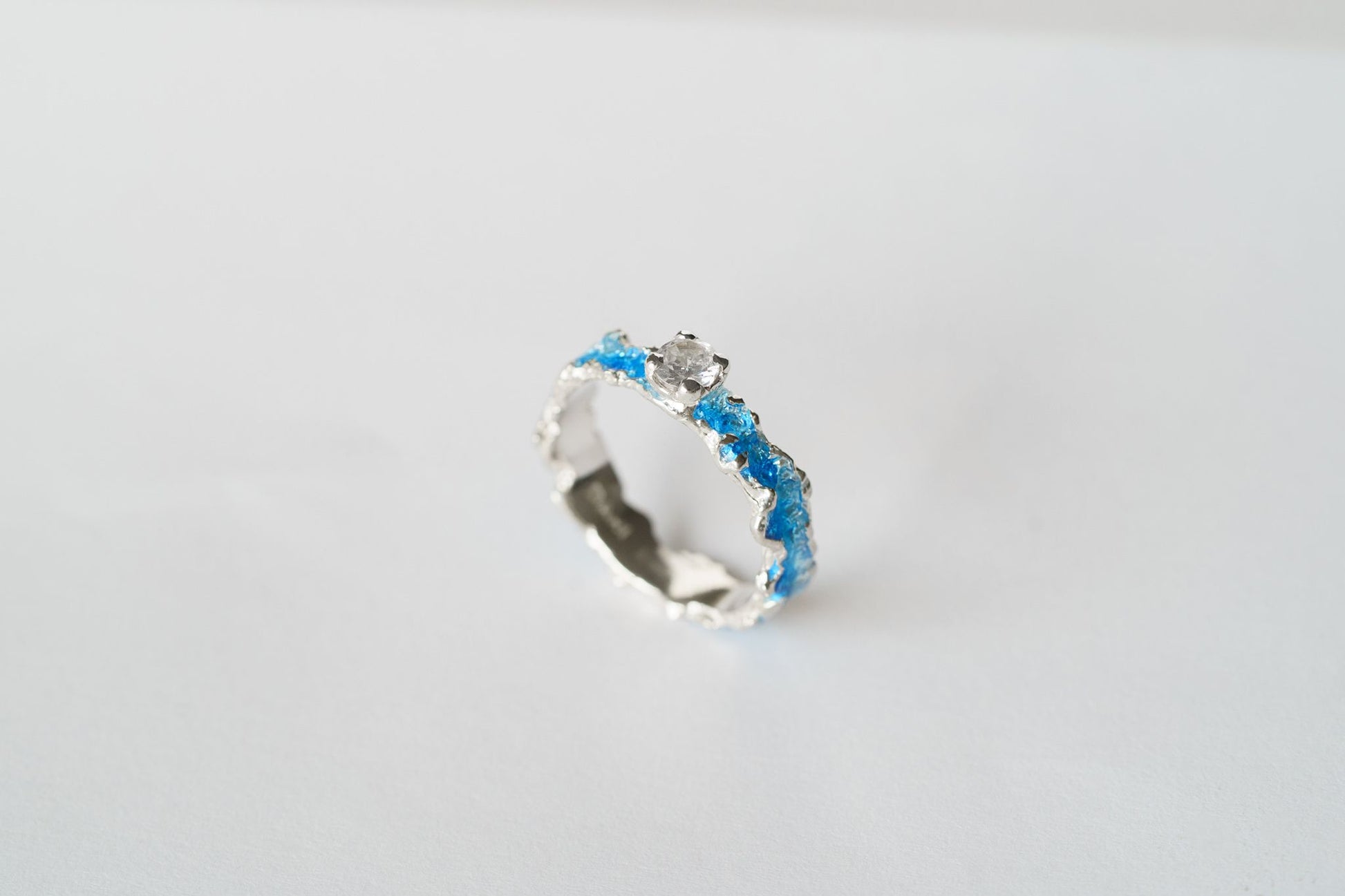 Emerald ring "Wave" (4 mm gemstone) - a stylish jewelry with a graceful curve, reminiscent of a sea wave. The accent element is a shining transparent stone, which adds depth and expressiveness to the ring. An ideal choice for those who love elegant accessories inspired by nature.