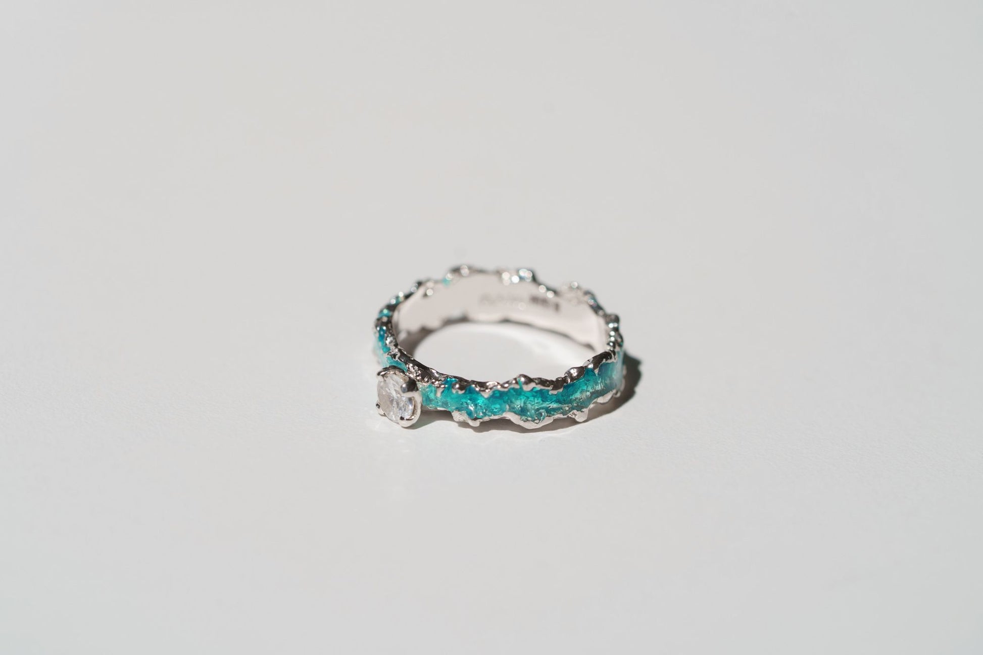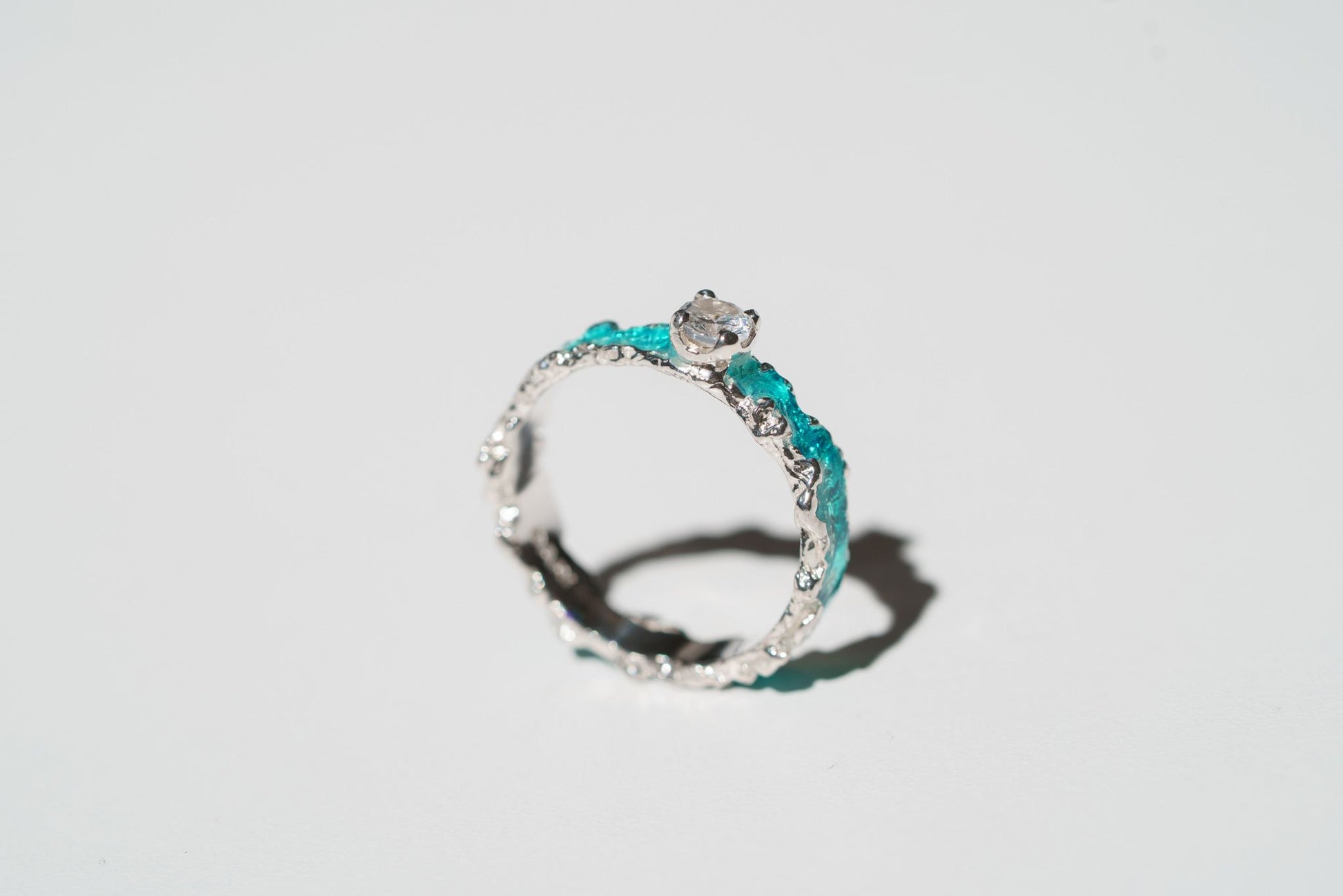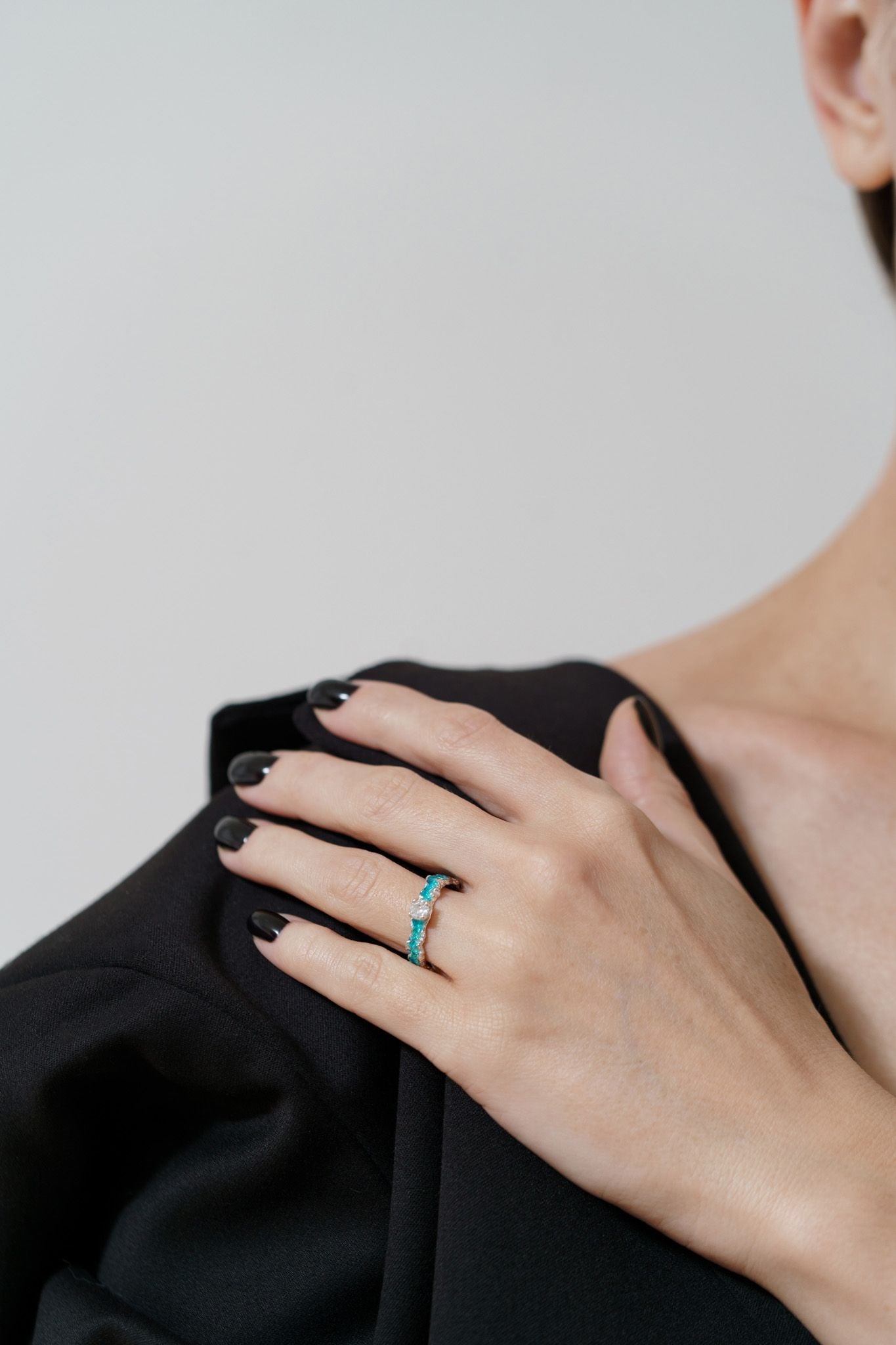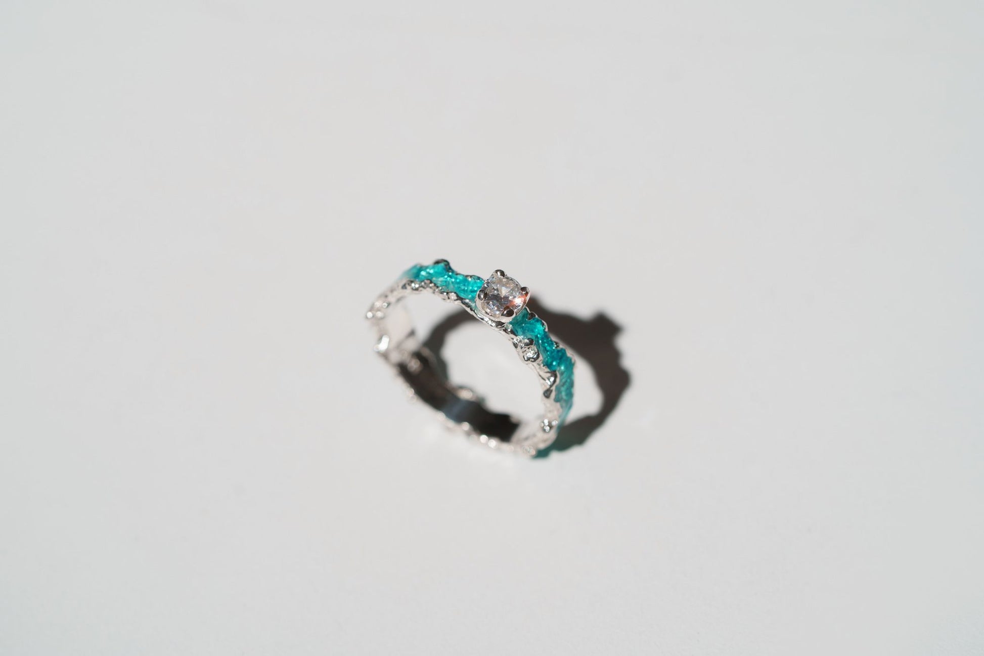 Emerald ring "Wave" (4 mm gemstone) - a stylish jewelry with a graceful curve, reminiscent of a sea wave. The accent element is a shining transparent stone, which adds depth and expressiveness to the ring. An ideal choice for those who love elegant accessories inspired by nature.