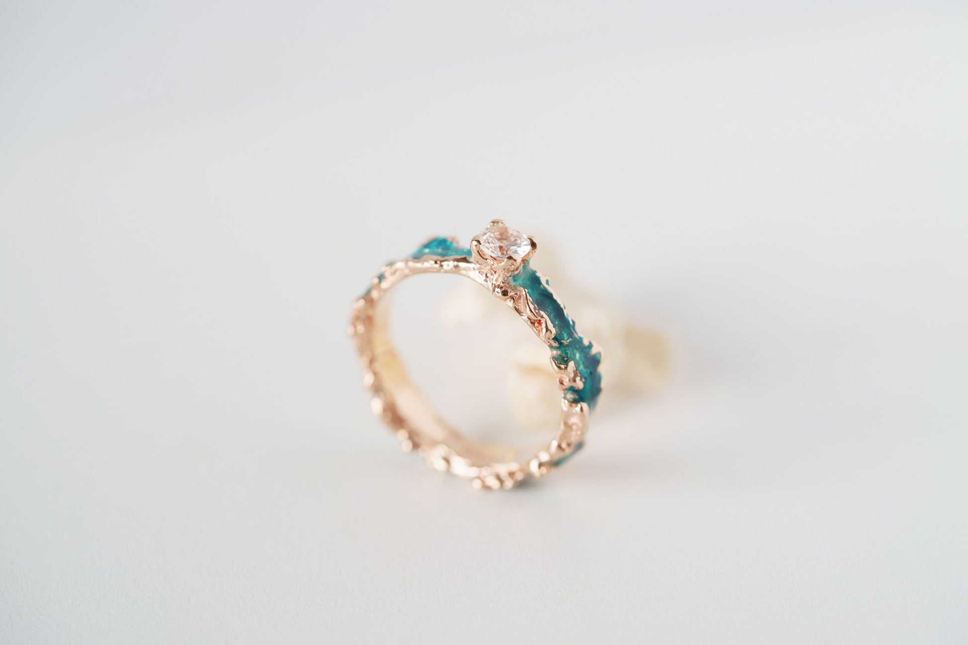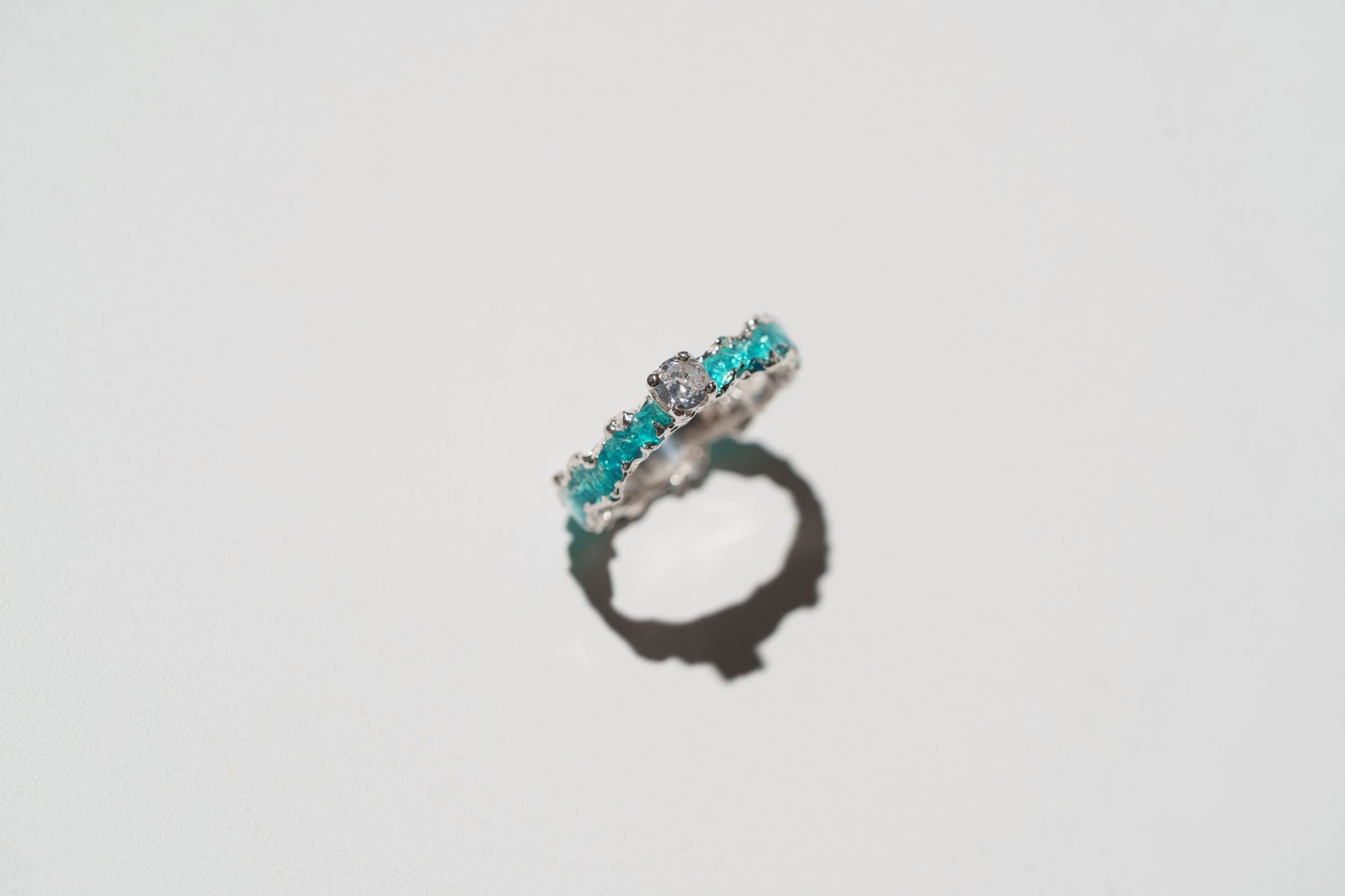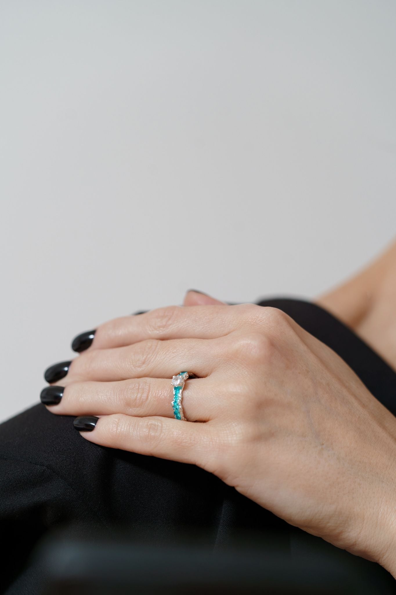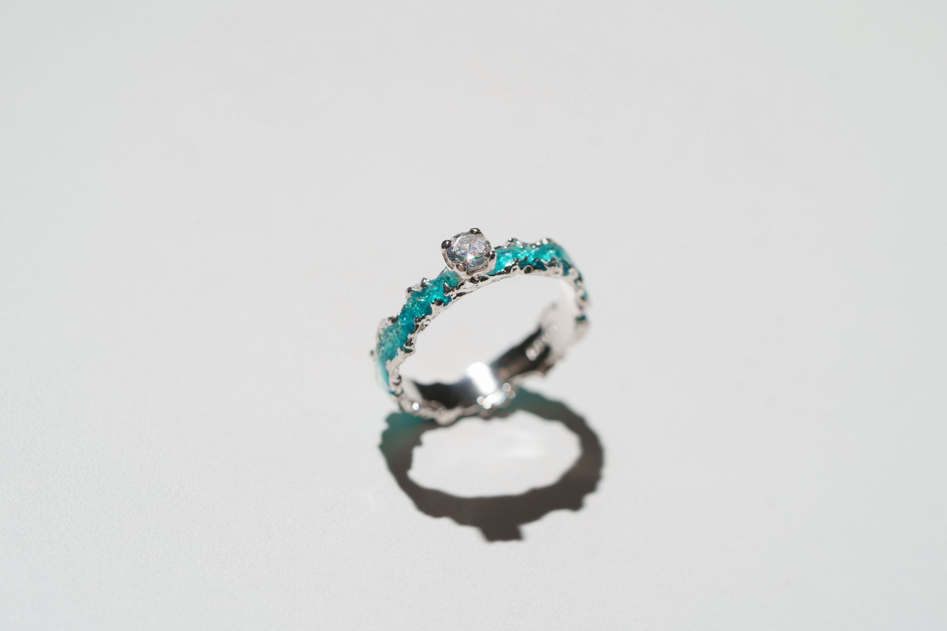 Emerald ring "Wave" (4 mm gemstone) - a stylish jewelry with a graceful curve, reminiscent of a sea wave. The accent element is a shining transparent stone, which adds depth and expressiveness to the ring. An ideal choice for those who love elegant accessories inspired by nature.