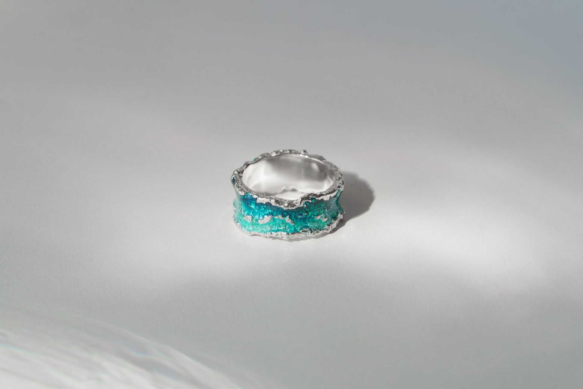 The "Wave" emerald ring (10 mm) features a unique enamel design, creating a one-of-a-kind look. Expertly crafted with individual attention, this ring boasts of a stylish and sophisticated appearance. Elevate your style with this statement piece.