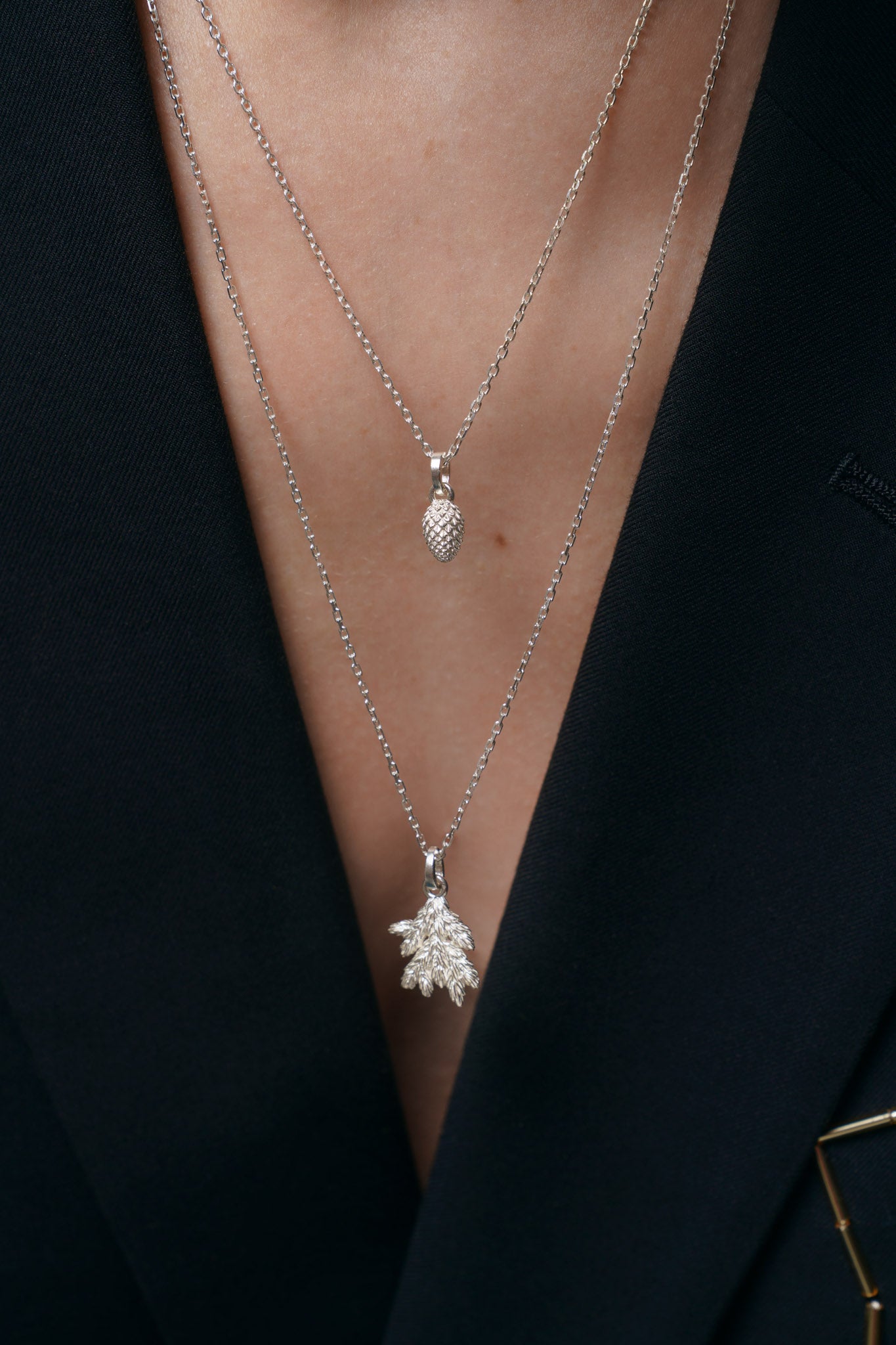 “Spruce Branch and Cone” is a talisman for those who carry the Carpathians in their heart and wish to keep a piece of the mountains always close. They pair perfectly with the “Spruce Cone” earrings, the “Spruce Branch” earrings, and the “Carpathian Spruce” ring.