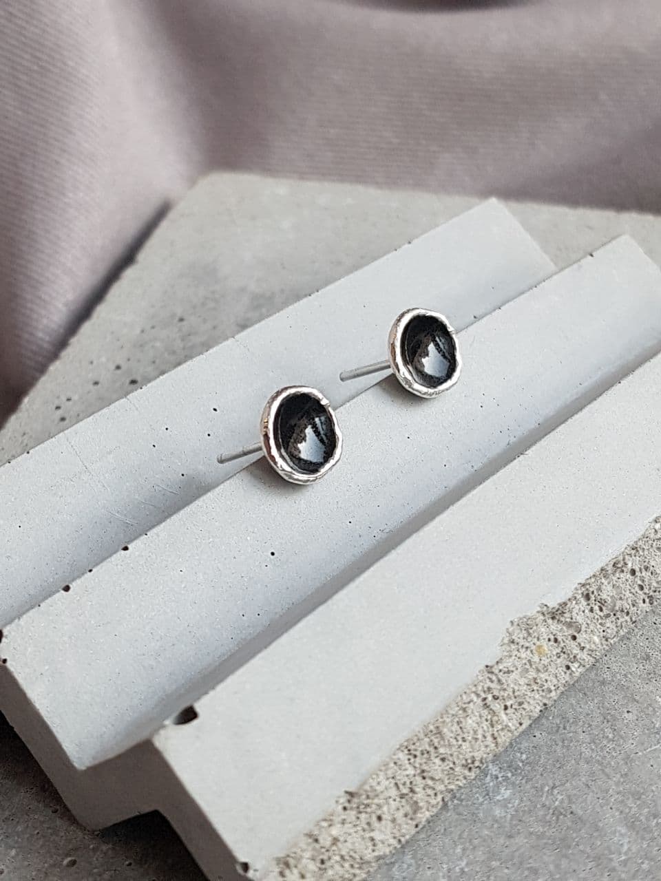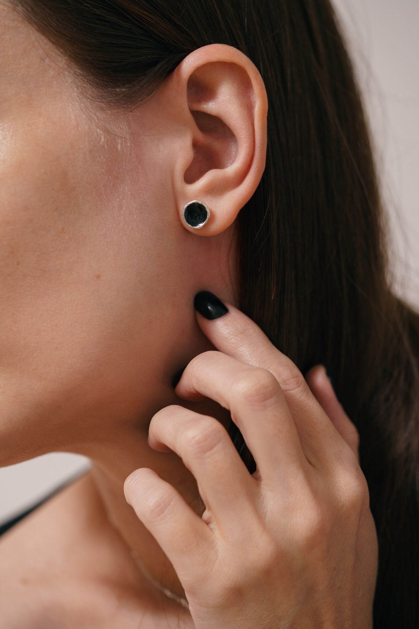 Upgrade your collection of earrings with our cosmic and minimalist stud earrings "Dark matter". Embrace the mystery of the universe with this unique pair, perfect for adding a touch of sophistication to any outfit. Made for the fashion-forward, fearless individuals with a love for all things cosmic.
