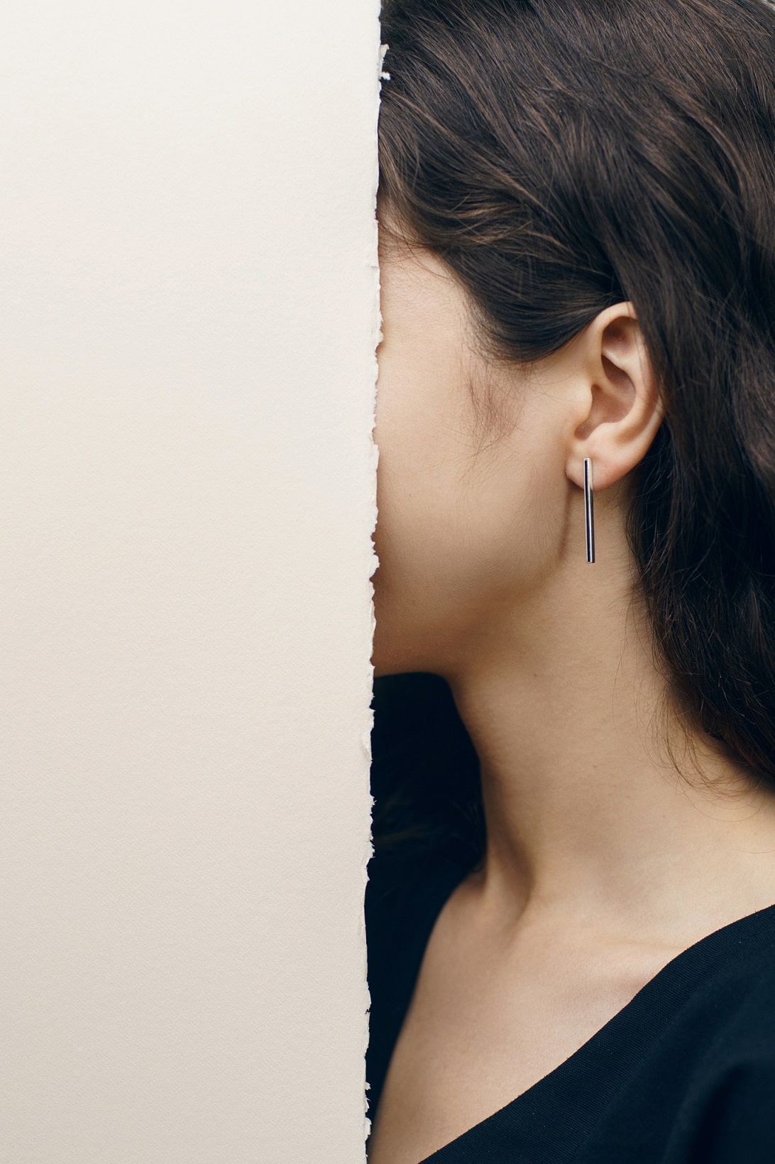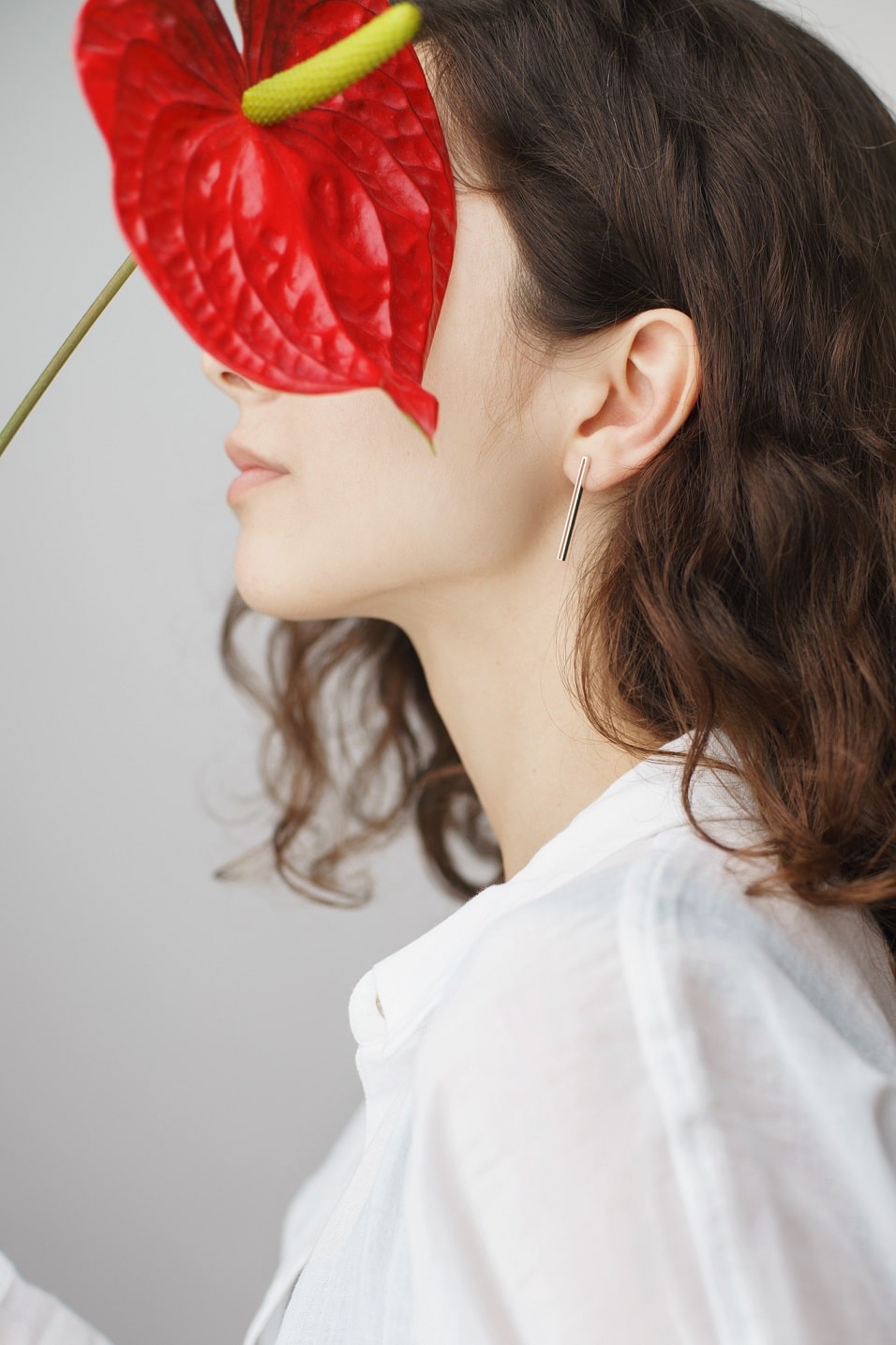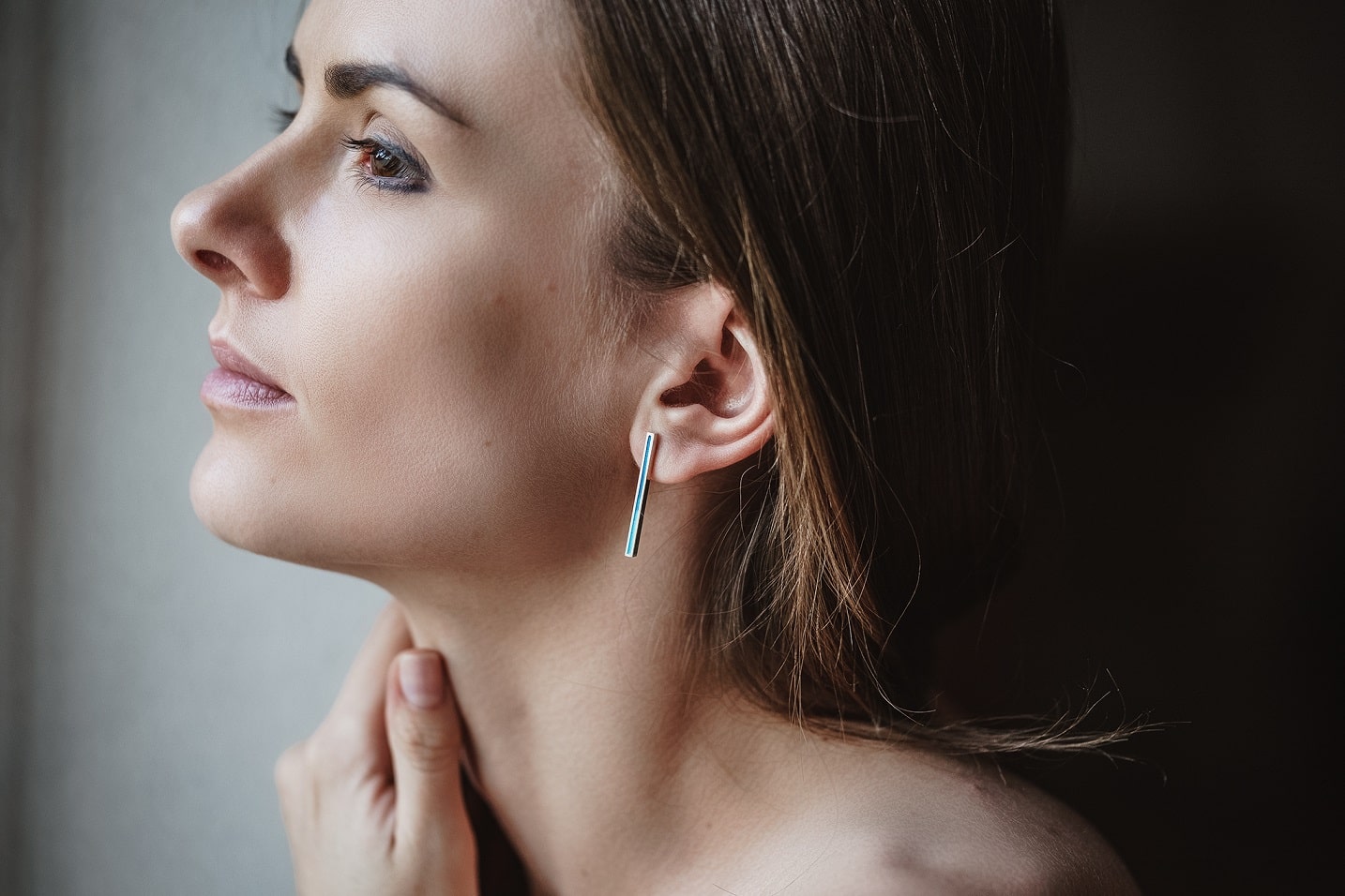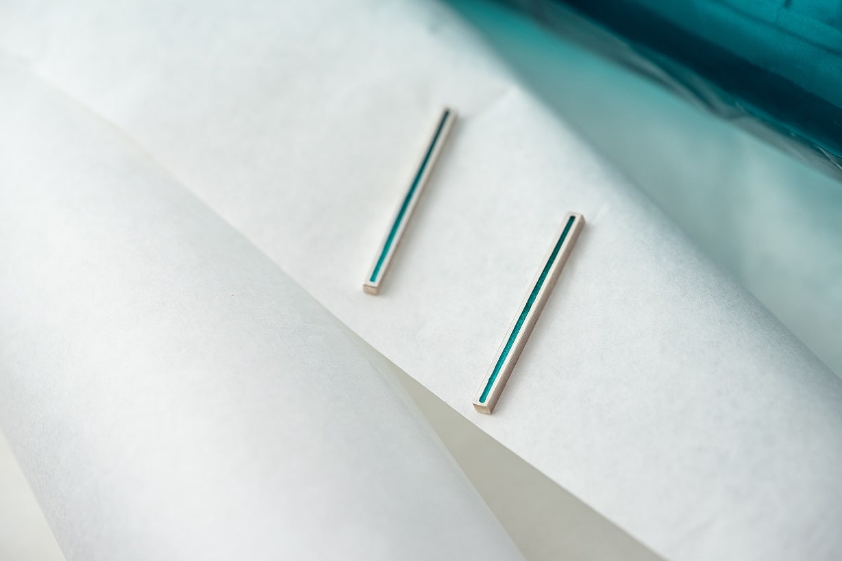 Stud earrings "Stripe" (31 mm) with enamel - a stylish jewelry with a concise elongated design. The bright accent of enamel adds modernity and sophistication to the earrings, emphasizing individuality. An ideal choice for those who love restrained minimalism with colored details.