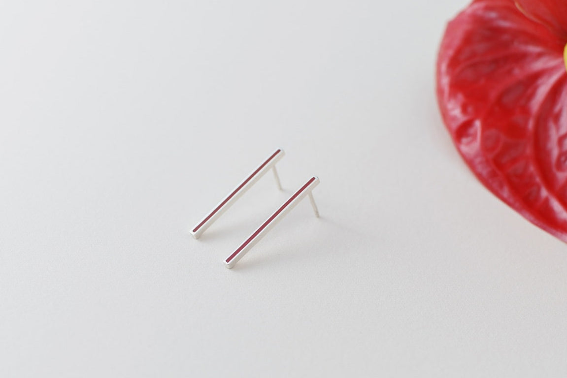 Stud earrings "Stripe" (31 mm) with enamel (different colors to choose from)