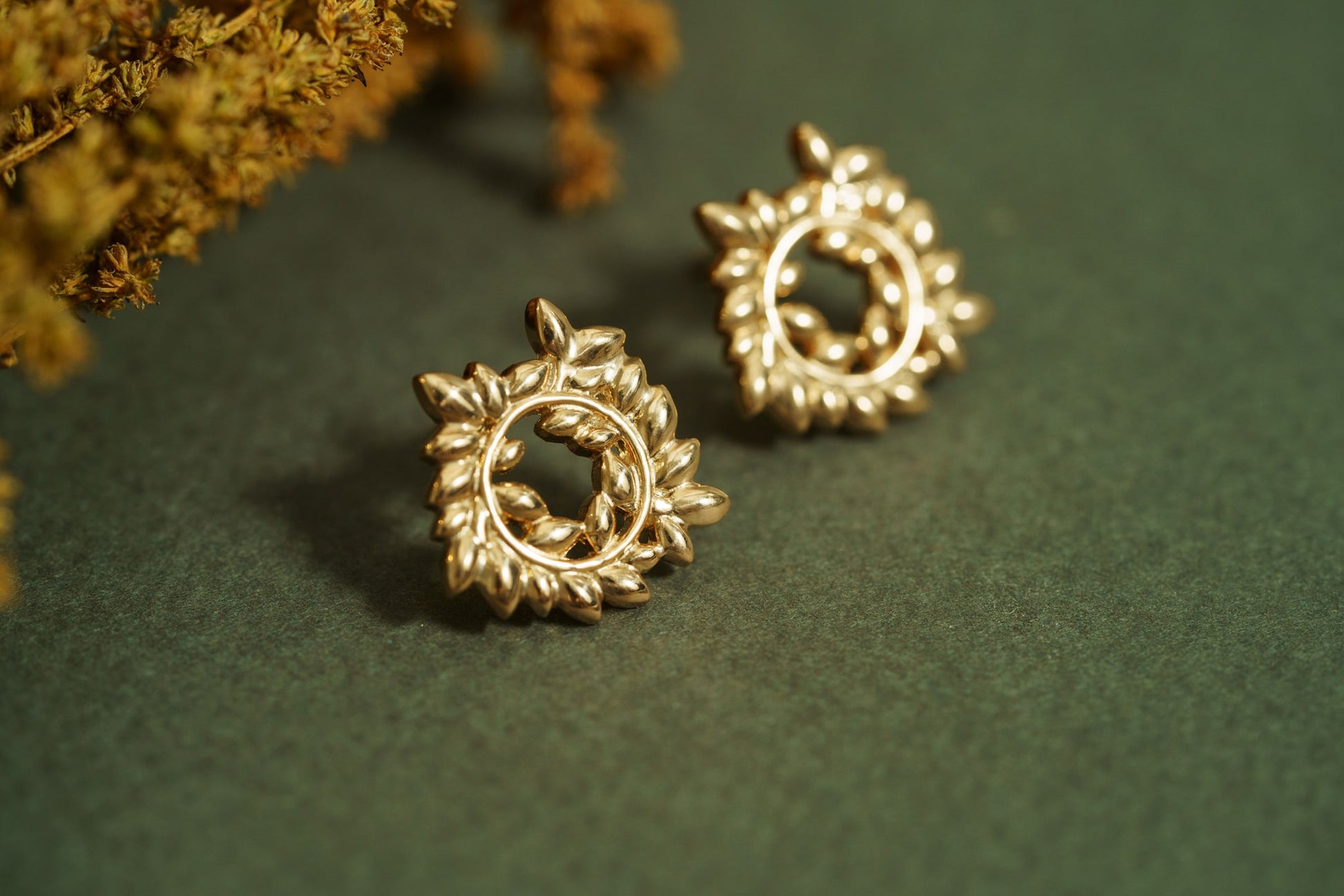 Enhance your style with our sophisticated and impressive "Wreath" stud earrings. These elegantly designed earrings are accented to add a touch of sparkle to your ensemble. Perfect for any occasion, these earrings will elevate your look with their timeless and classic design.