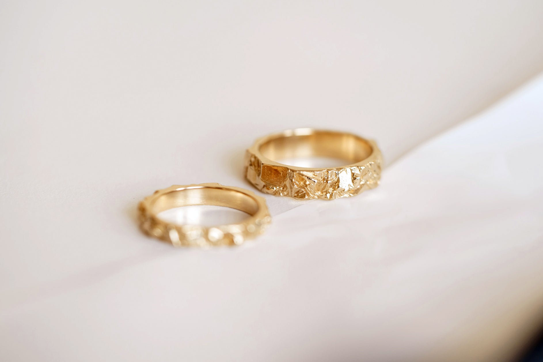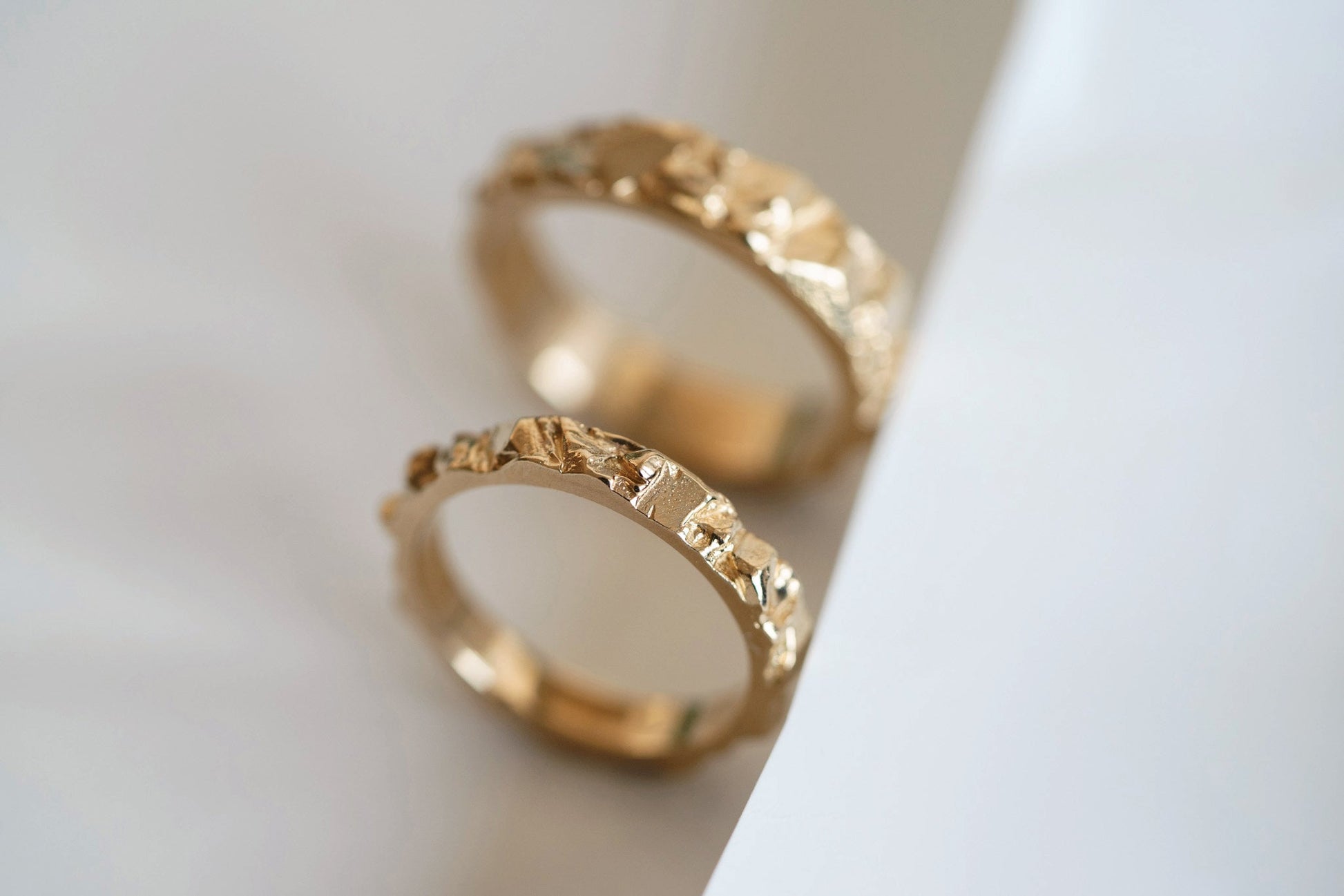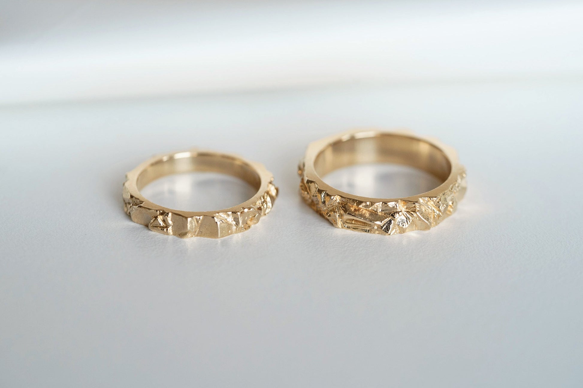 The price is for a 5 mm wide wedding band. Order a Wedding ring "Granite Rock" light (3 mm), which is the second in the pair.