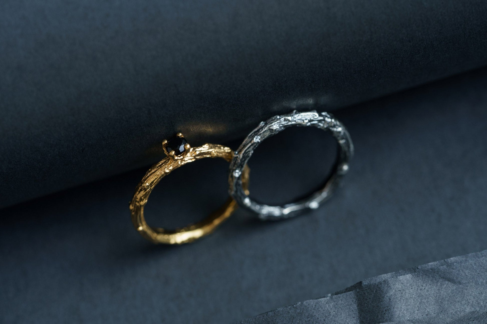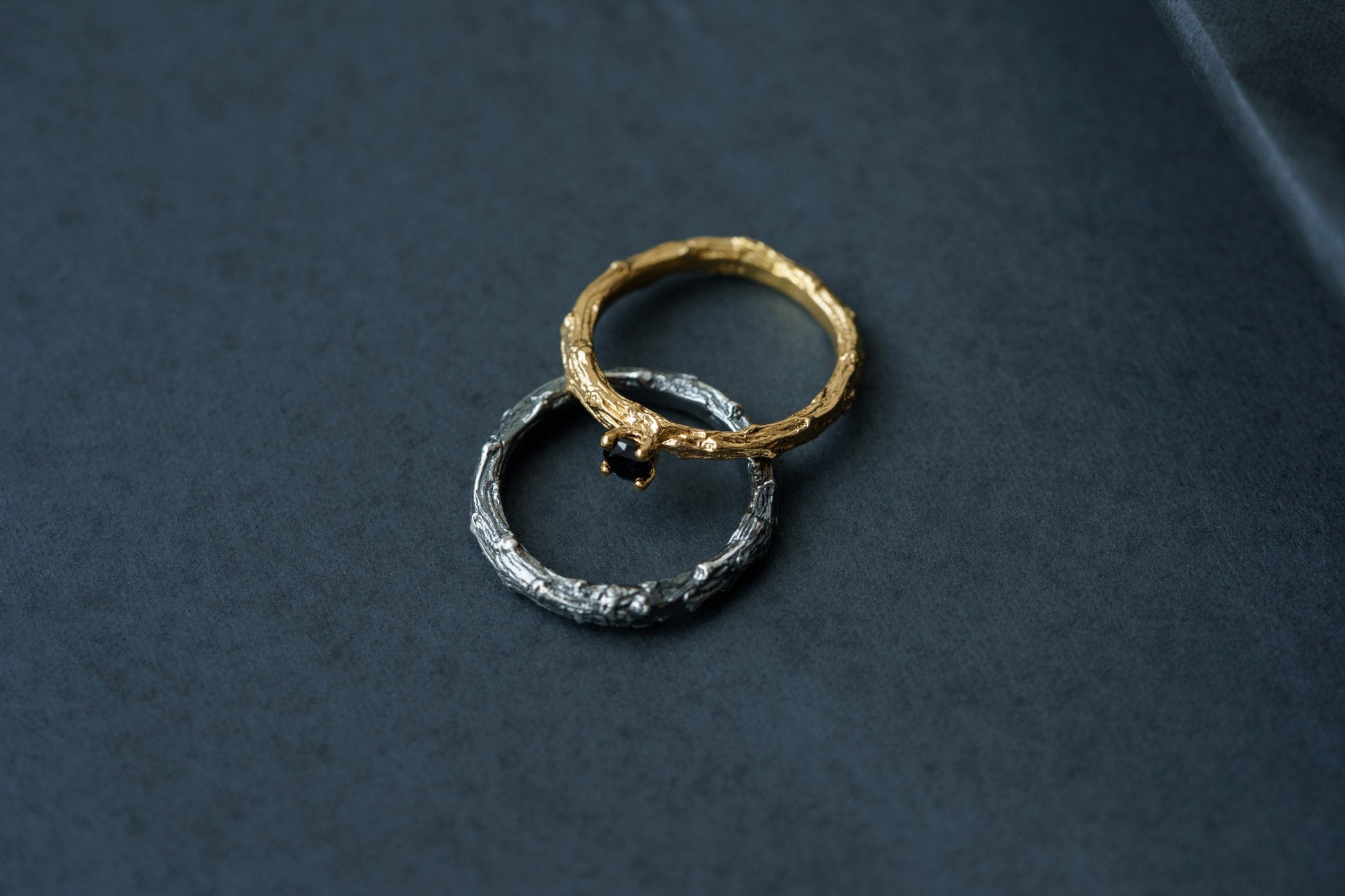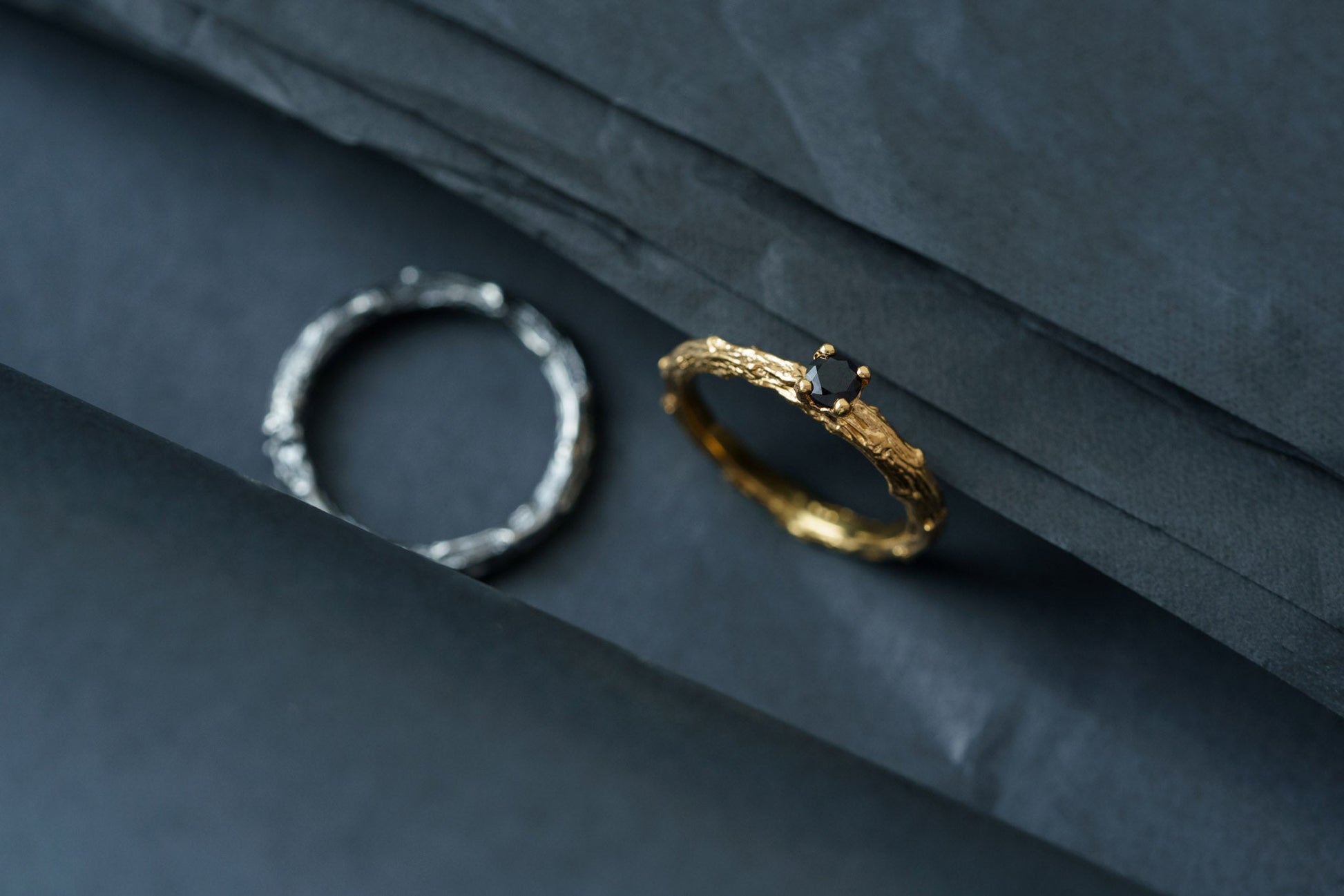 This pair of rings symbolizes harmony and the unity of two hearts. Crafted from high-quality noble metal, the rings feature an elegant vine-inspired design, representing growth, strength, and the enduring nature of love.