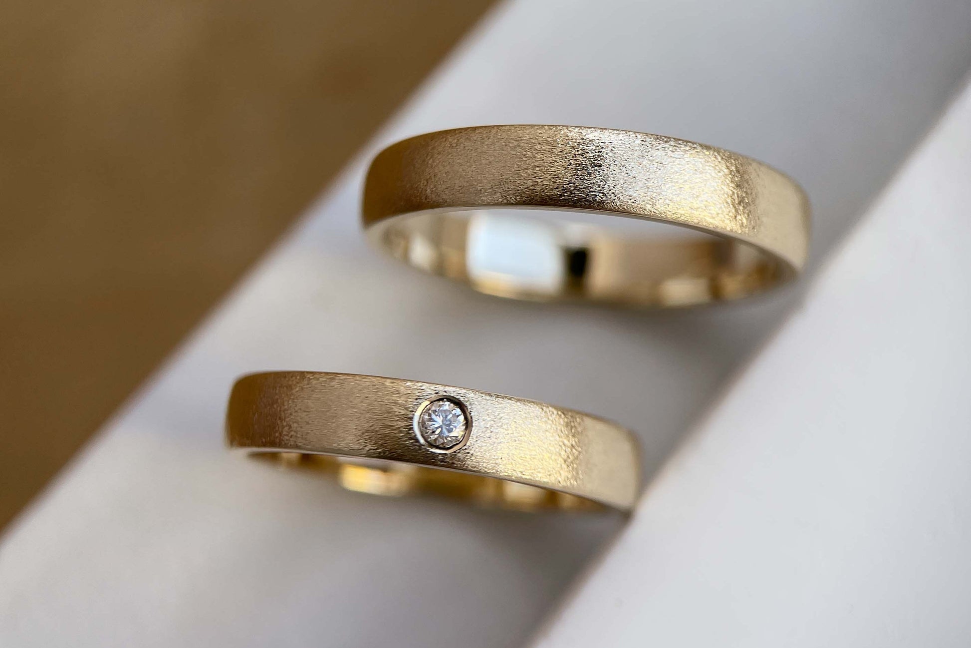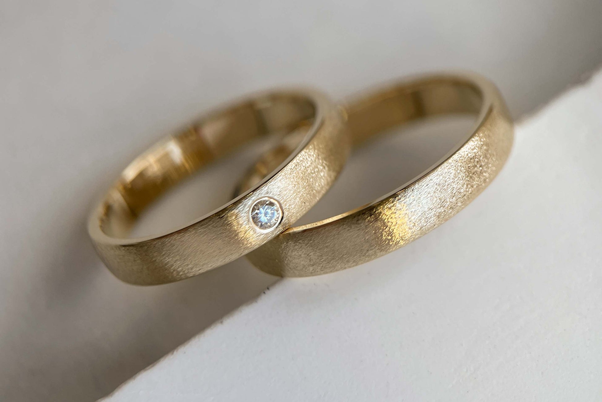 The “Simple” rings are the perfect symbol of your love. Crafted from high-quality metal, they feature a minimalist design with a brushed finish that adds a soft glow.