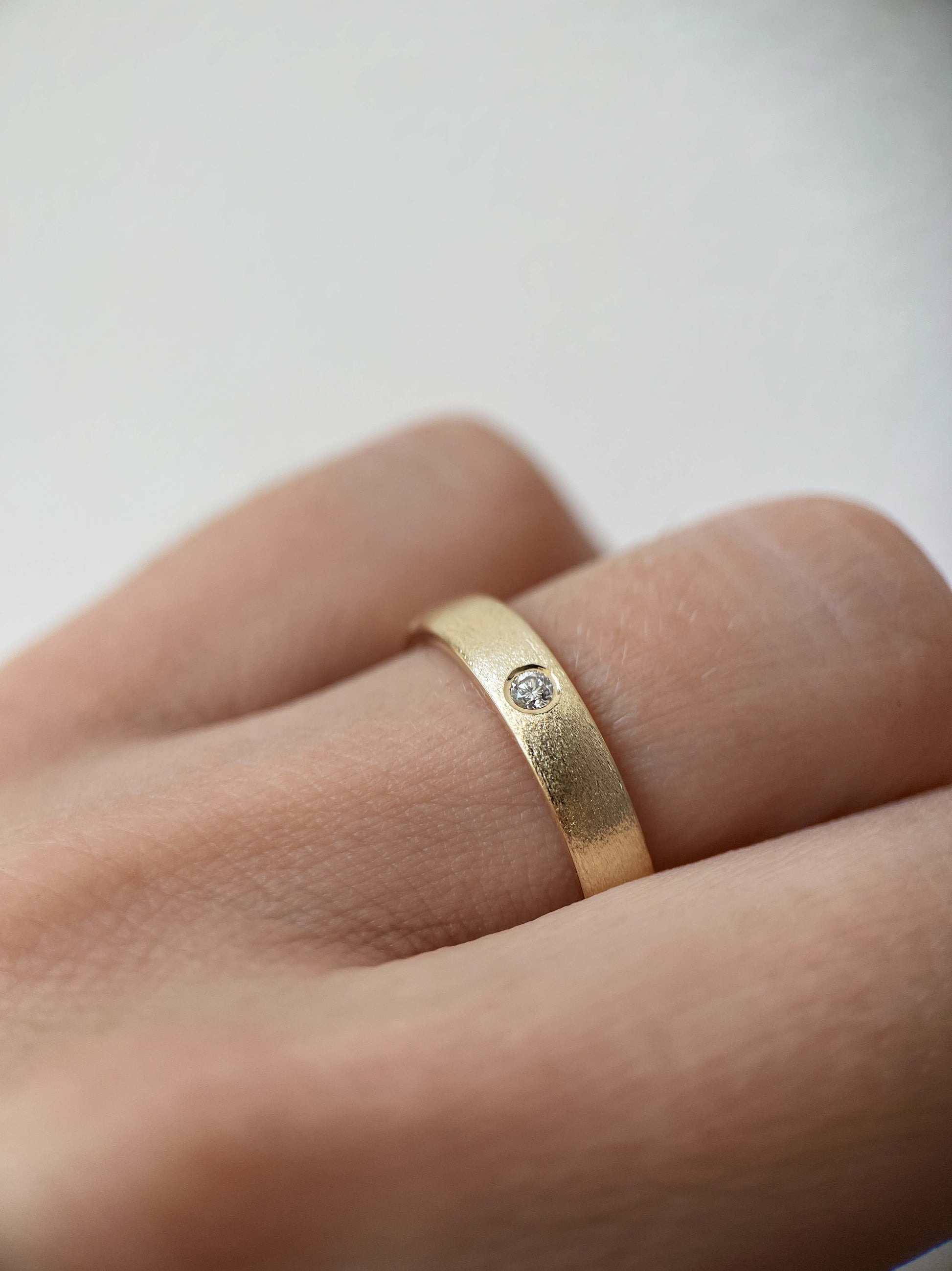 Wedding ring "Simple" (3 mm) brushed rounded with a gemstone
