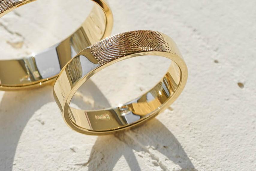 These rings are a refined and stylish pair that embodies both minimalism and uniqueness. Their sleek design is enhanced by your personalized fingerprints engraved on the outside, making each ring truly one of a kind.