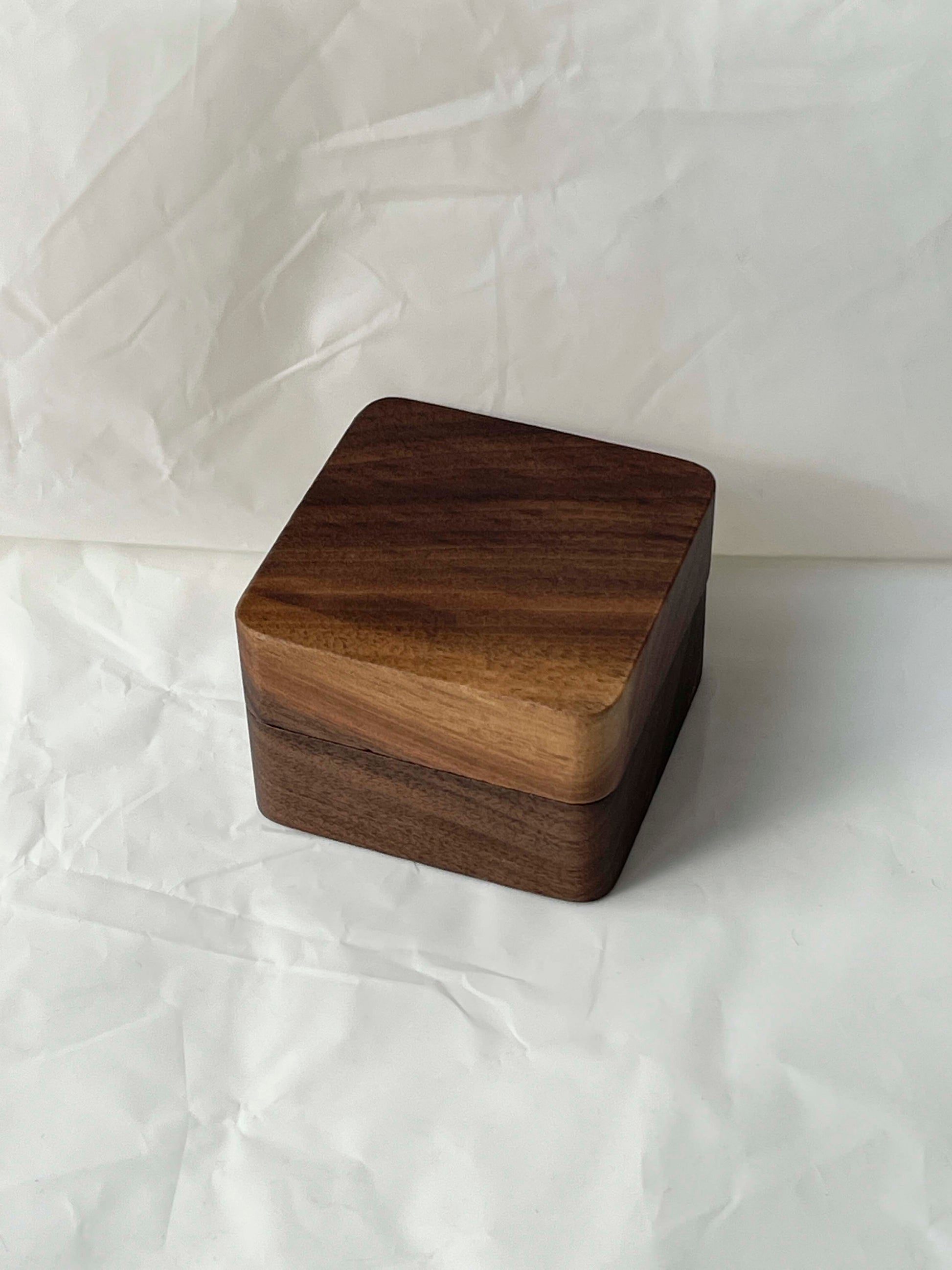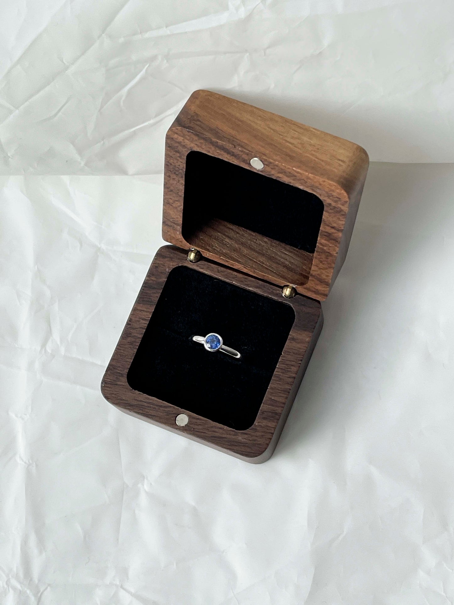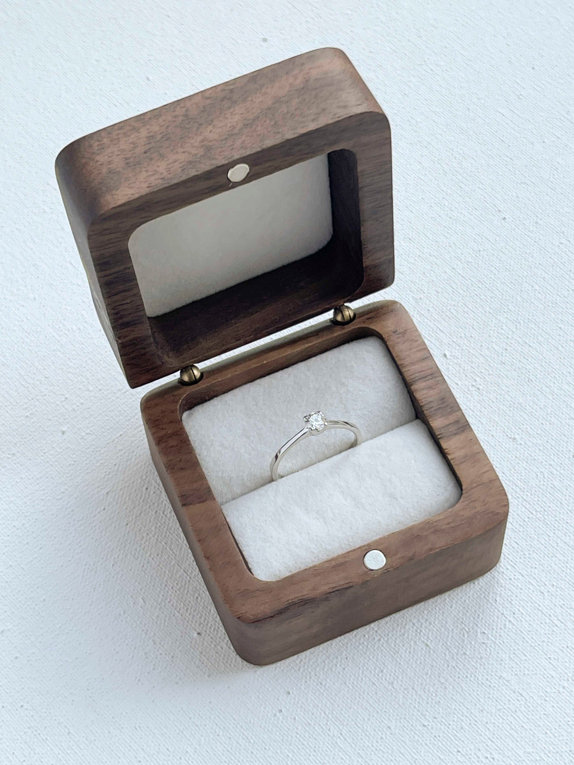 Wooden box for one ring (walnut color) is a sophisticated accessory that emphasizes the uniqueness of your jewelry. The warm natural shade of alder and minimalist design give it a special charm. The ideal choice for storing or presenting a ring, making the moment even more special.